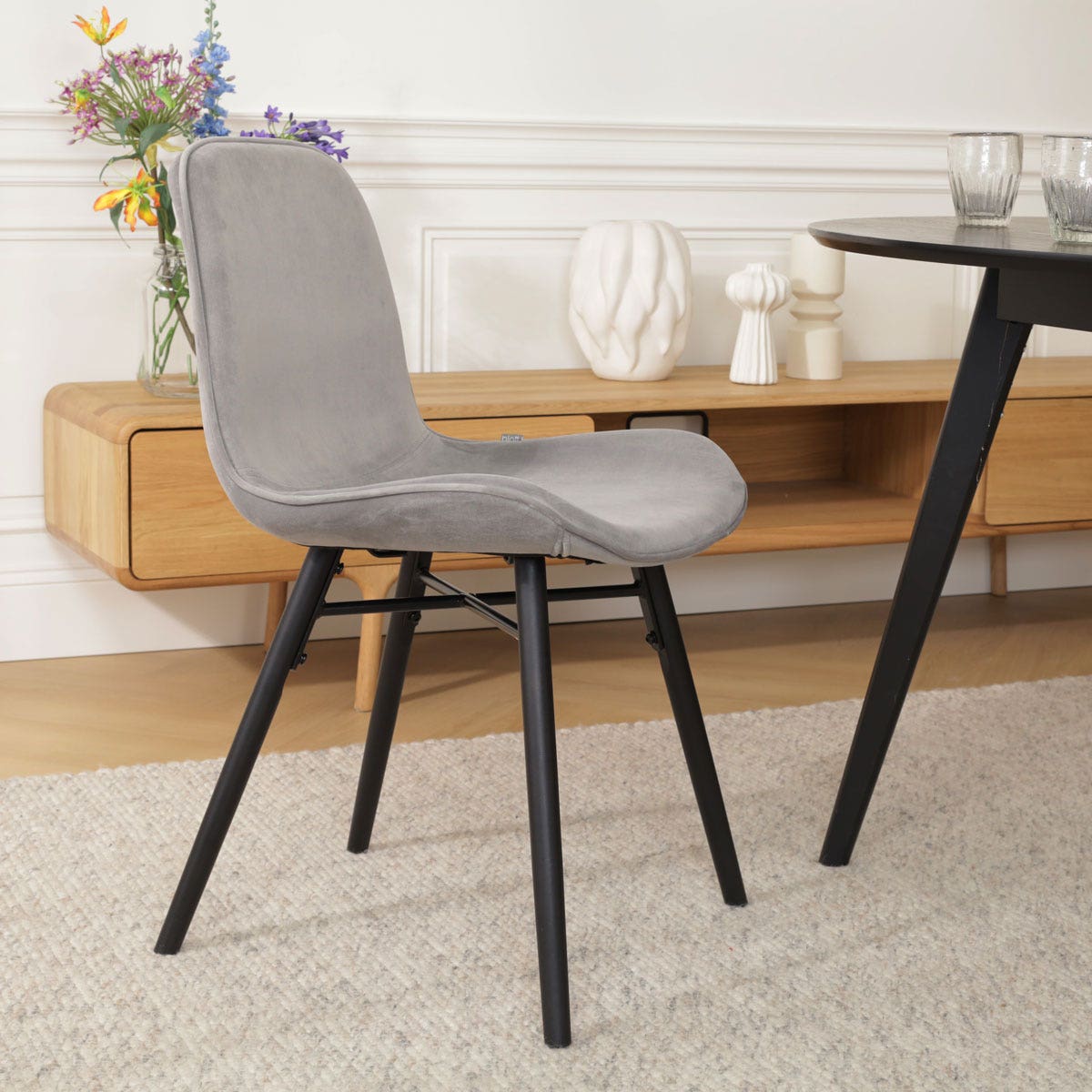 Nena Fé eetkamerstoel velvet grijs zwart houten onderstel