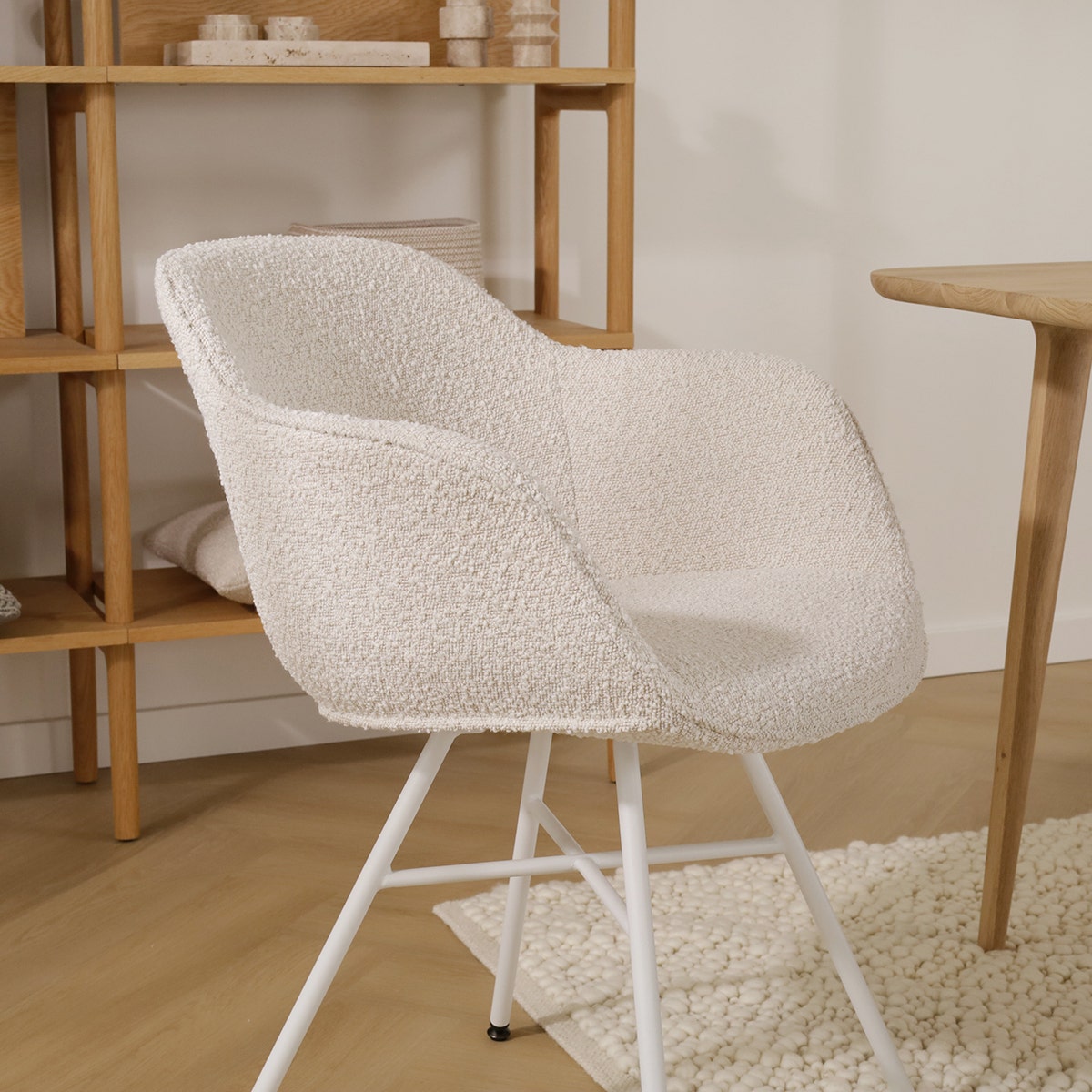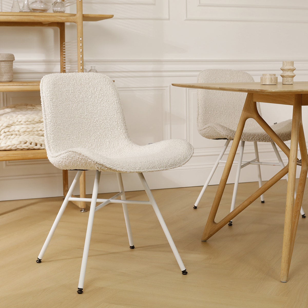 Noa Mare eetkamerstoel bouclé beige wit onderstel