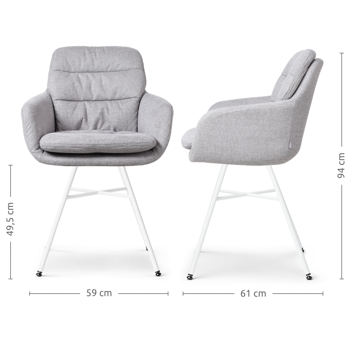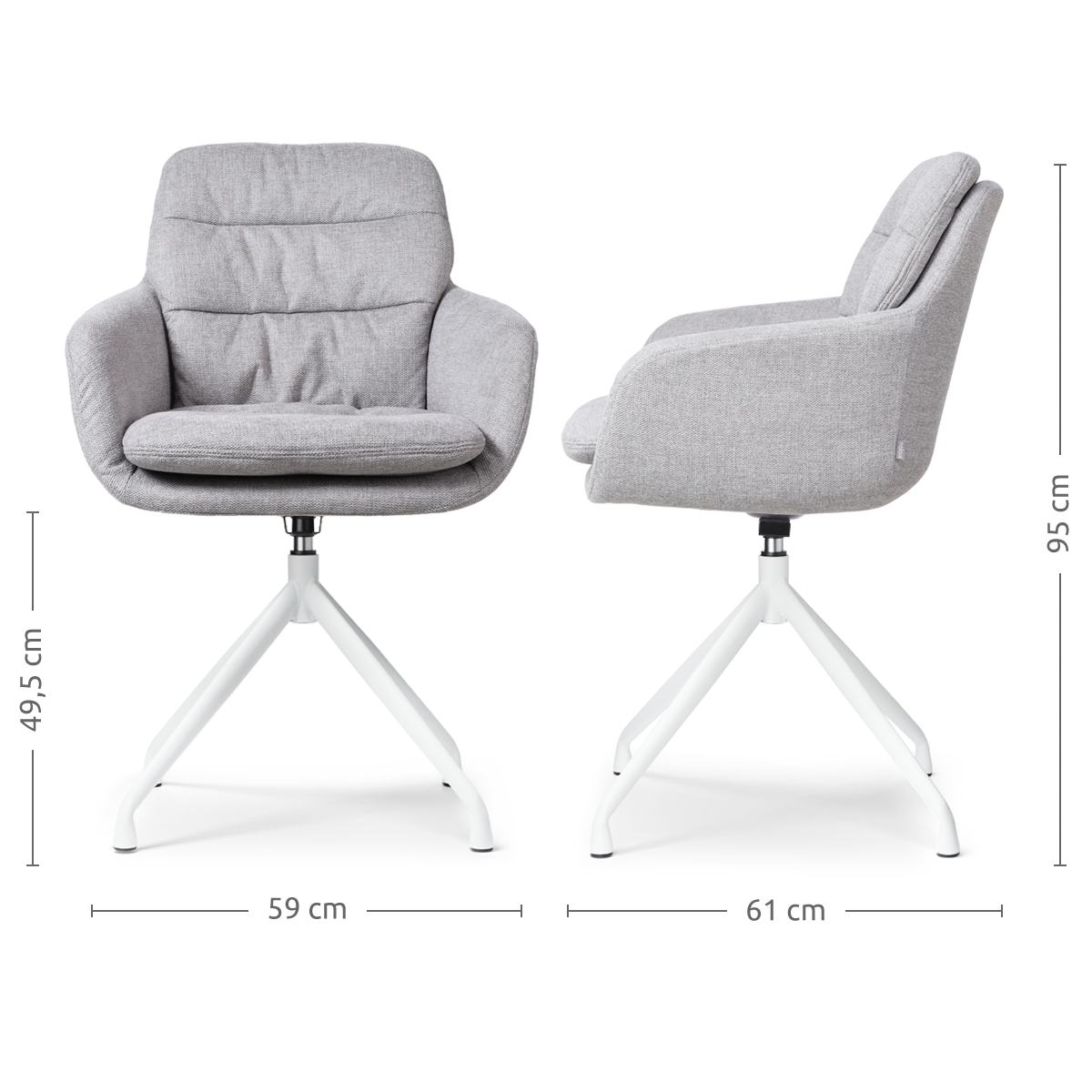 Nola Mia draaibare eetkamerstoel grijs wit onderstel set van 2