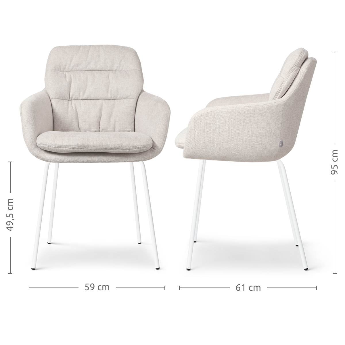 Noa Mia eetkamerstoel beige wit onderstel set van 2