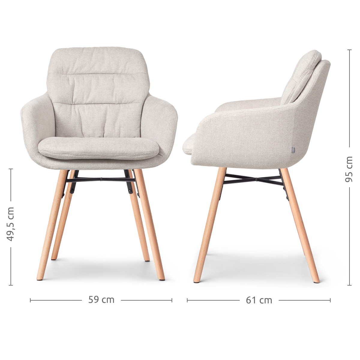 De Nena-Mia eetkamerstoel is een sfeervolle en comfortabele eetkamerstoel met houten poten van het merk Nolon. Deze set van twee eetkamerstoelen is de ideale keuze als je op zoek bent naar stoelen die op en top comfort bieden. Het onderstel van de eetkamerstoel is gemaakt van hout en heeft een metalen kruis in het midden. Dit zorgt voor stevigheid en is een stoer detail. De comfortabele zitting heeft een hoge rugleuning en armleuningen om het lichaam voldoende steun te geven aan tafel. De zachte stoffen bekleding en het vaste zitkussen zorgen ervoor dat je extra zacht zit. Lang natafelen is met de Nena-Mia dus zeker geen probleem. Maak een keuze uit de beige of grijze bekleding en geef jouw eethoek een stijlvolle en comfortabele upgrade met de Nena-Mia eetkamerstoel. Is deze zitting of het houten onderstel juist precies wat je zoekt? Met de uitgebreide mix en match collectie van Nolon kan je ieder onderstel met elke zitting combineren. Voordelen en