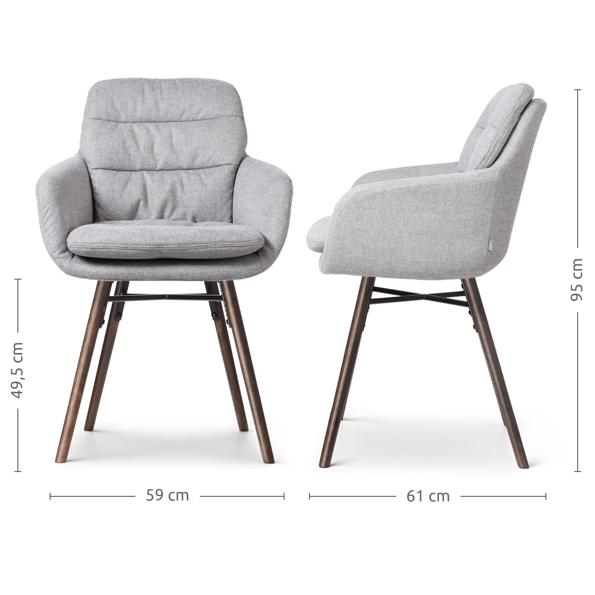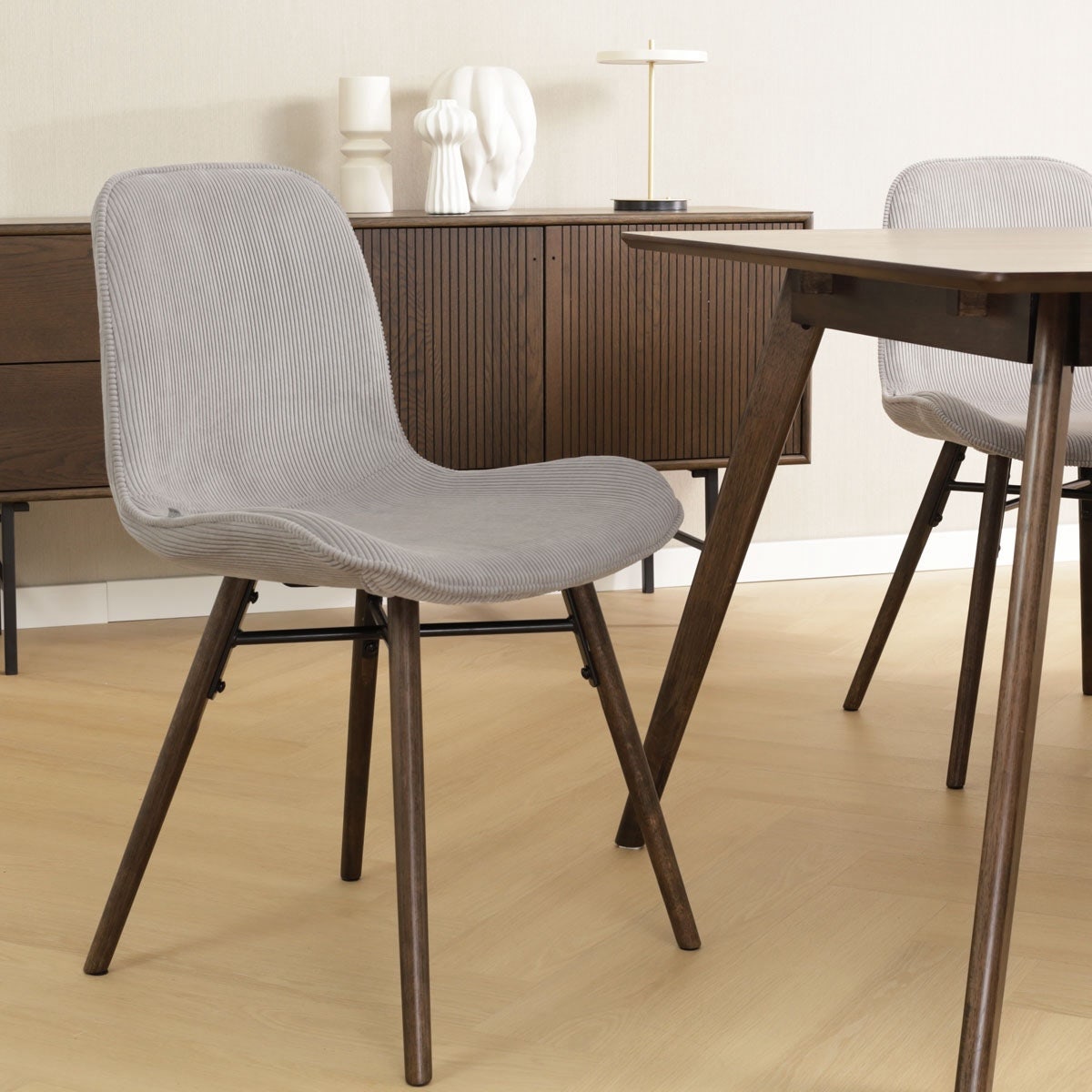 Nena Mia eetkamerstoel grijs walnoot houten onderstel set van 2