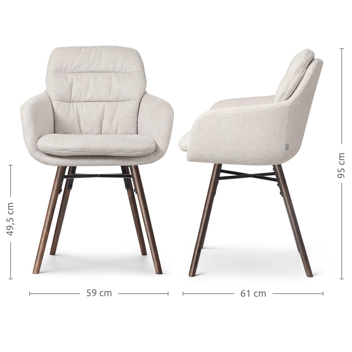 Nena Mia eetkamerstoel beige walnoot houten onderstel set van 2