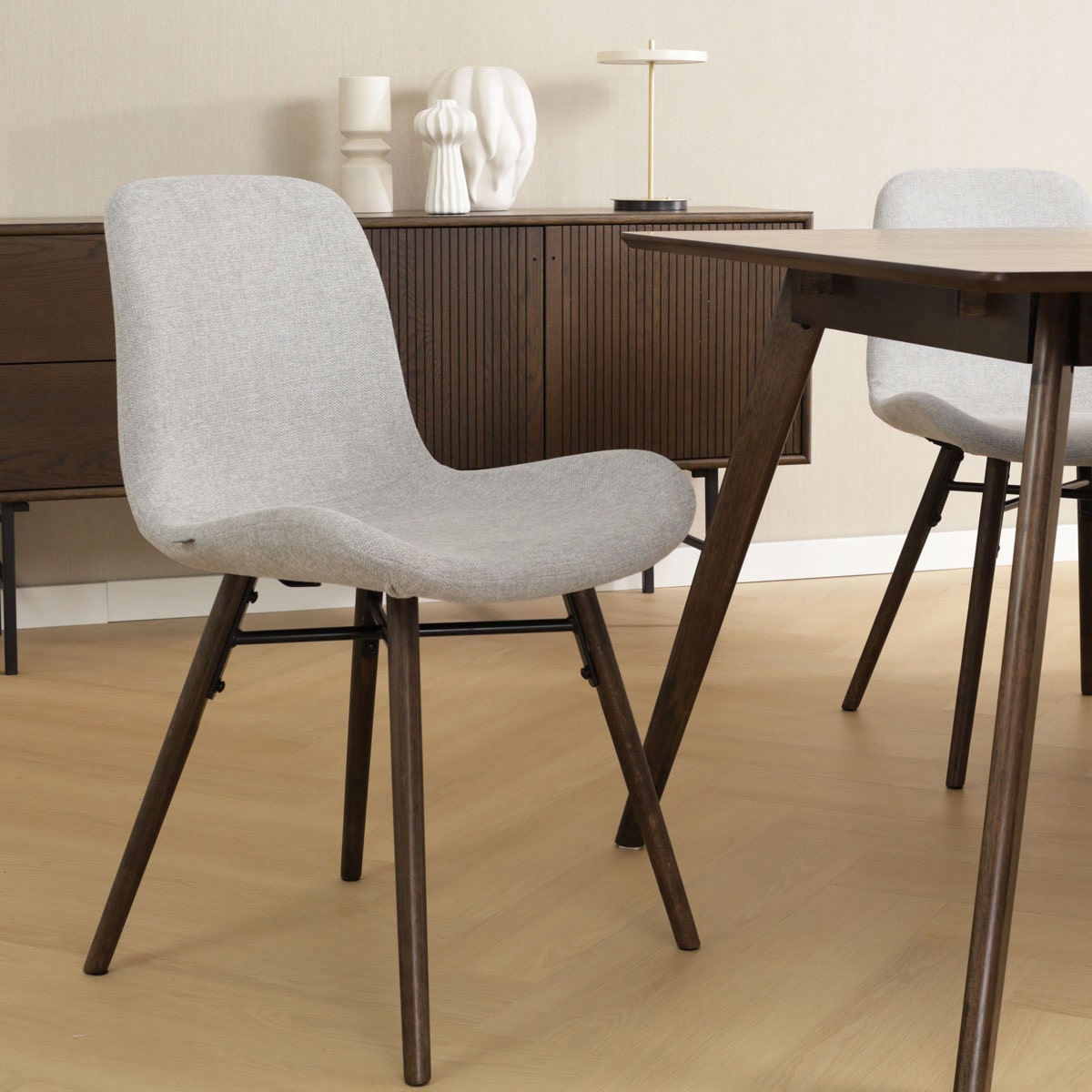 Nena Fé eetkamerstoel lichtgrijs walnoot houten onderstel set van 2