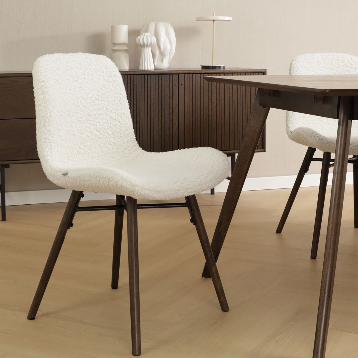 Nena Fé eetkamerstoel teddy gebroken wit walnoot houten onderstel set van 2