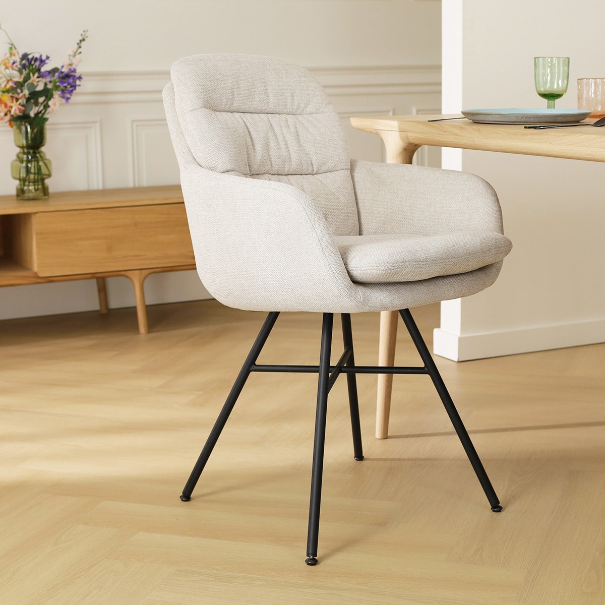 Nora Mia eetkamerstoel beige zwart onderstel set van 2