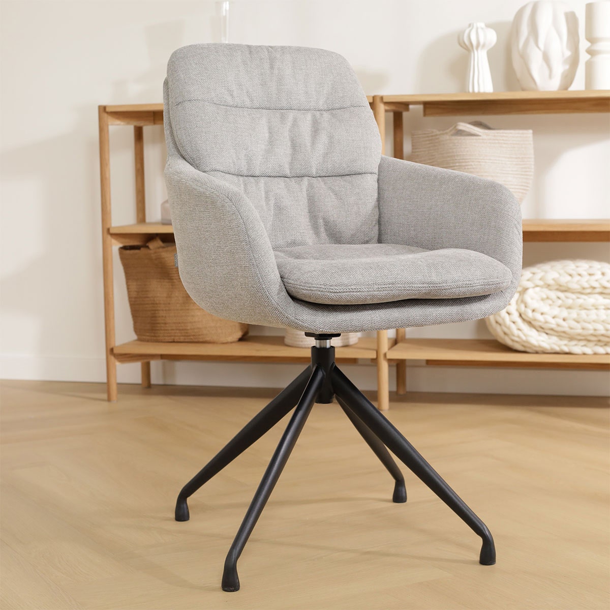 Nola Mia draaibare eetkamerstoel grijs zwart onderstel set van 2