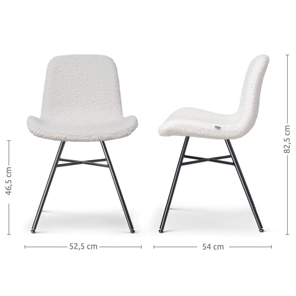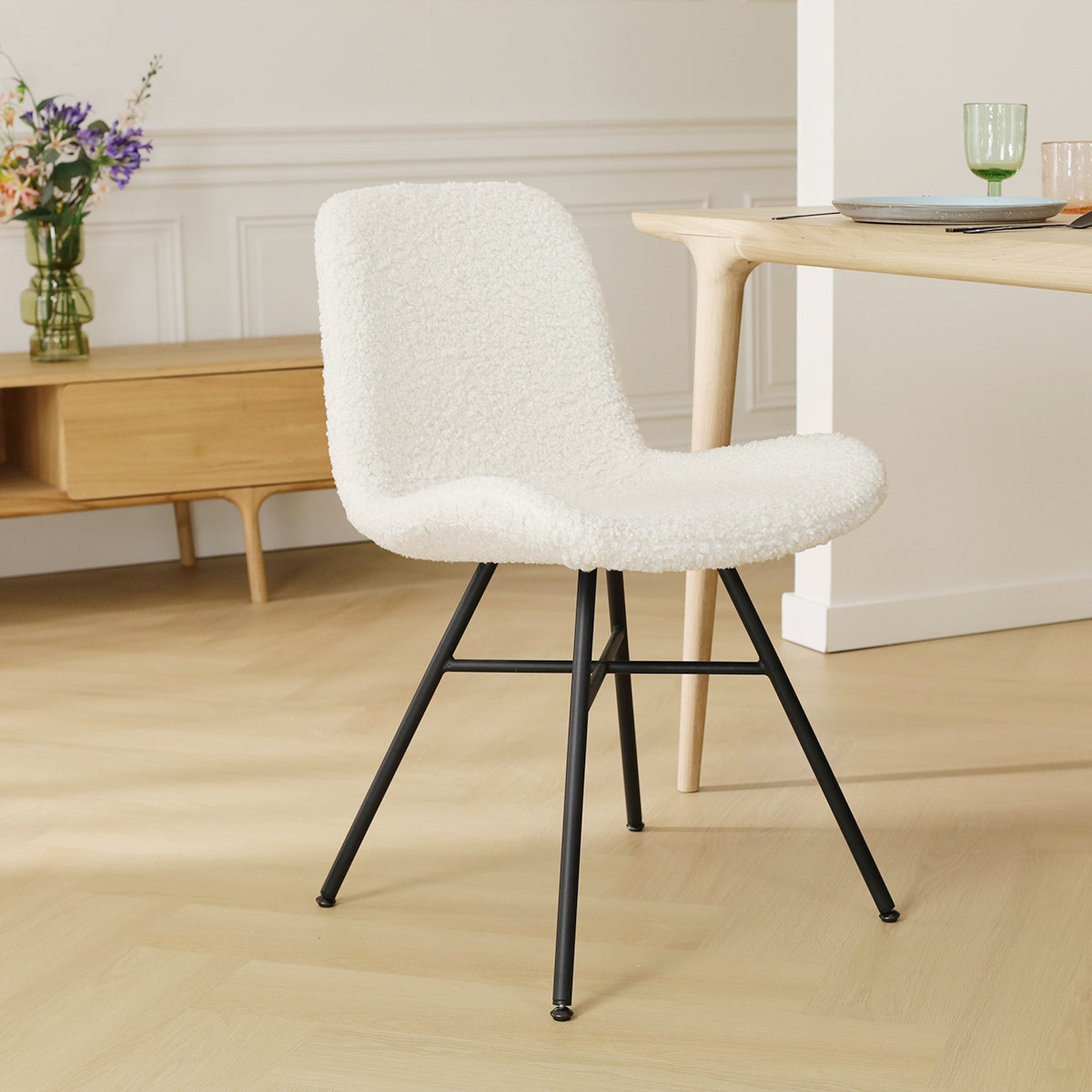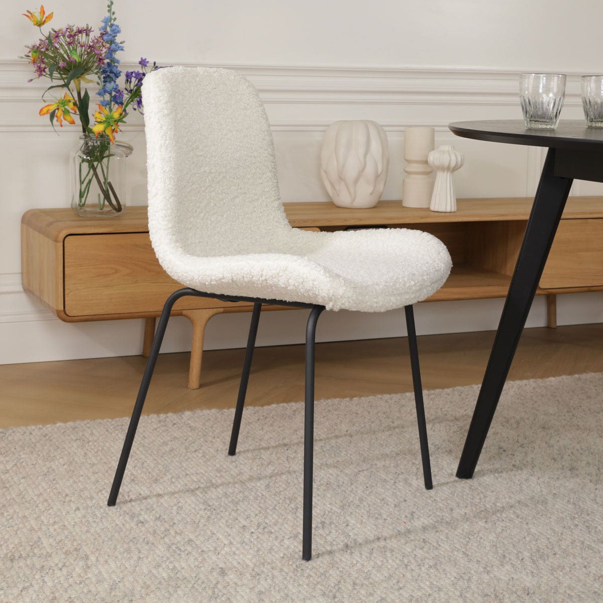 Noa Fé eetkamerstoel teddy gebroken wit zwart onderstel set van 2