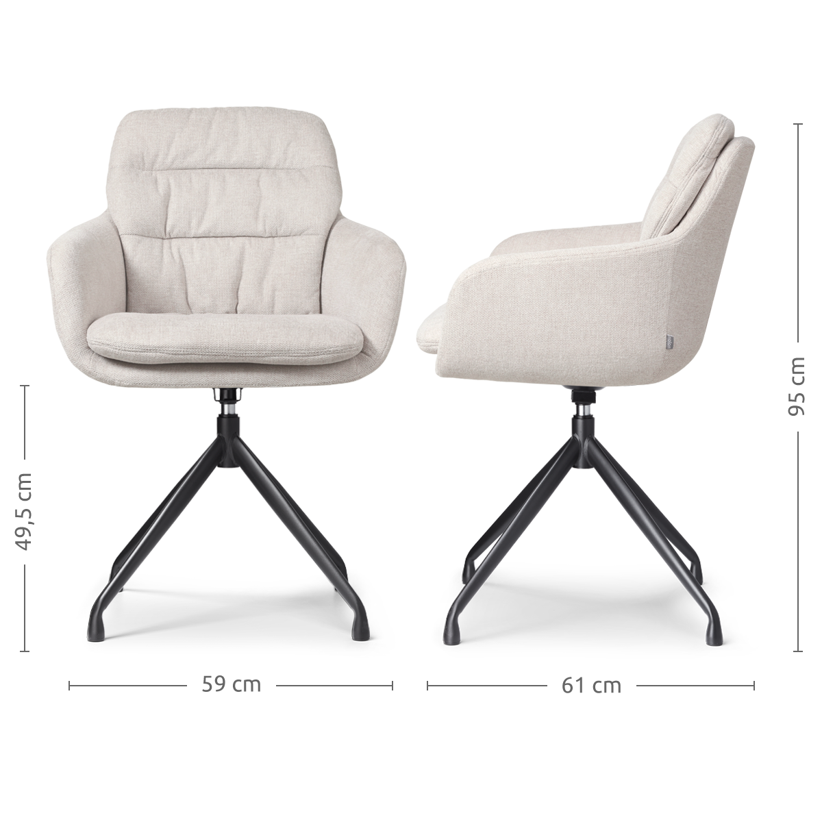 Nola Fé draaibare eetkamerstoel beige zwart onderstel set van 2