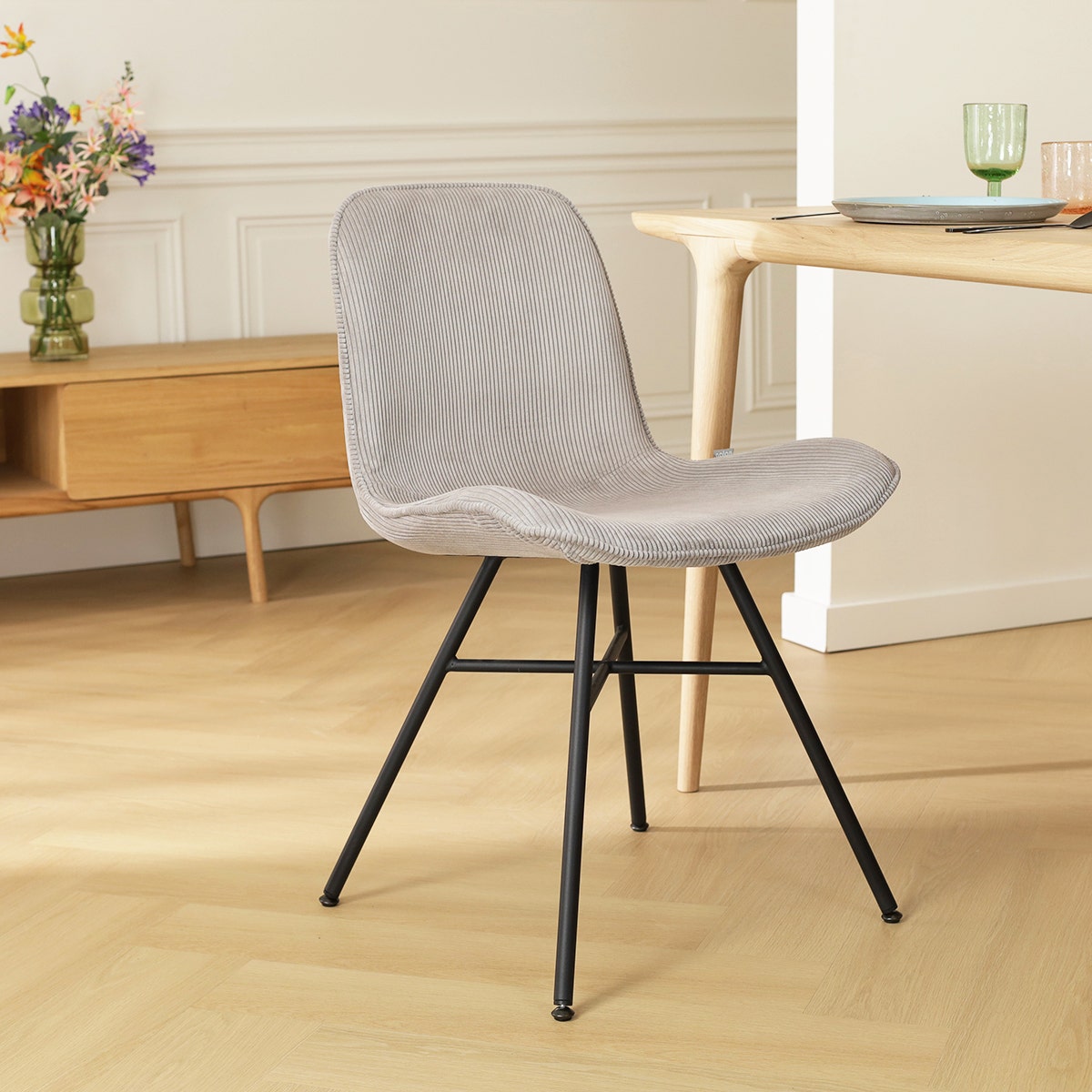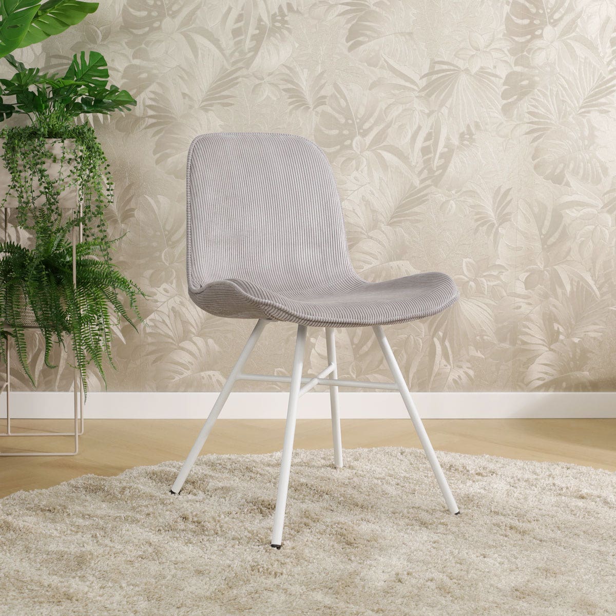Noa Fé eetkamerstoel rib warm grijs wit onderstel set van 2