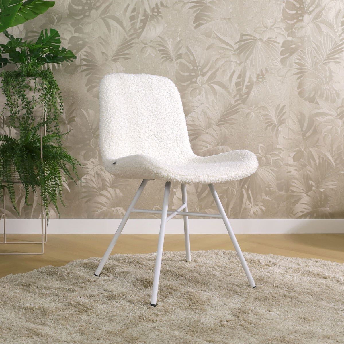 Noa Fé eetkamerstoel teddy gebroken wit wit onderstel set van 2
