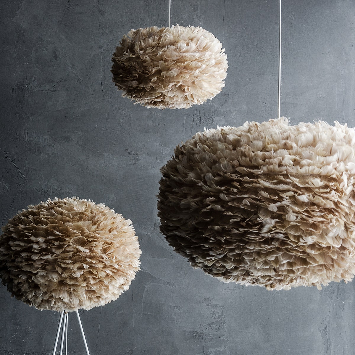 De Umage Eos Large hanglamp is een echte blikvanger in je interieur. De hanglamp is gemaakt van echte ganzenveren. Bij wet is Umage verplicht, evenals andere grote retailers in de wereld, om te documenteren waar de ganzen en veren vandaan komen. Je kunt dus genieten van een prachtig lichteffect in je interieur, dat op milieuvriendelijke wijze tot stand is gebracht. Hang de lamp op in de slaapkamer, woonkamer of hal om direct sfeer te creëren. Bovendien onderhoud je de lamp goed door de lamp af en toe te föhnen, hierdoor blaas je gemakkelijk het stof van de veren en houd je ze luchtig! Voor meer informatie bekijk hier de montagevideo. Voordelen Gemaakt van ganzenveren Meteen klaar om op te hangen, door het meegeleverde koordsetjes Gemakkelijk in elkaar te zetten Een echte sfeermaker in je interieur Ook verkrijgbaar in meerdere