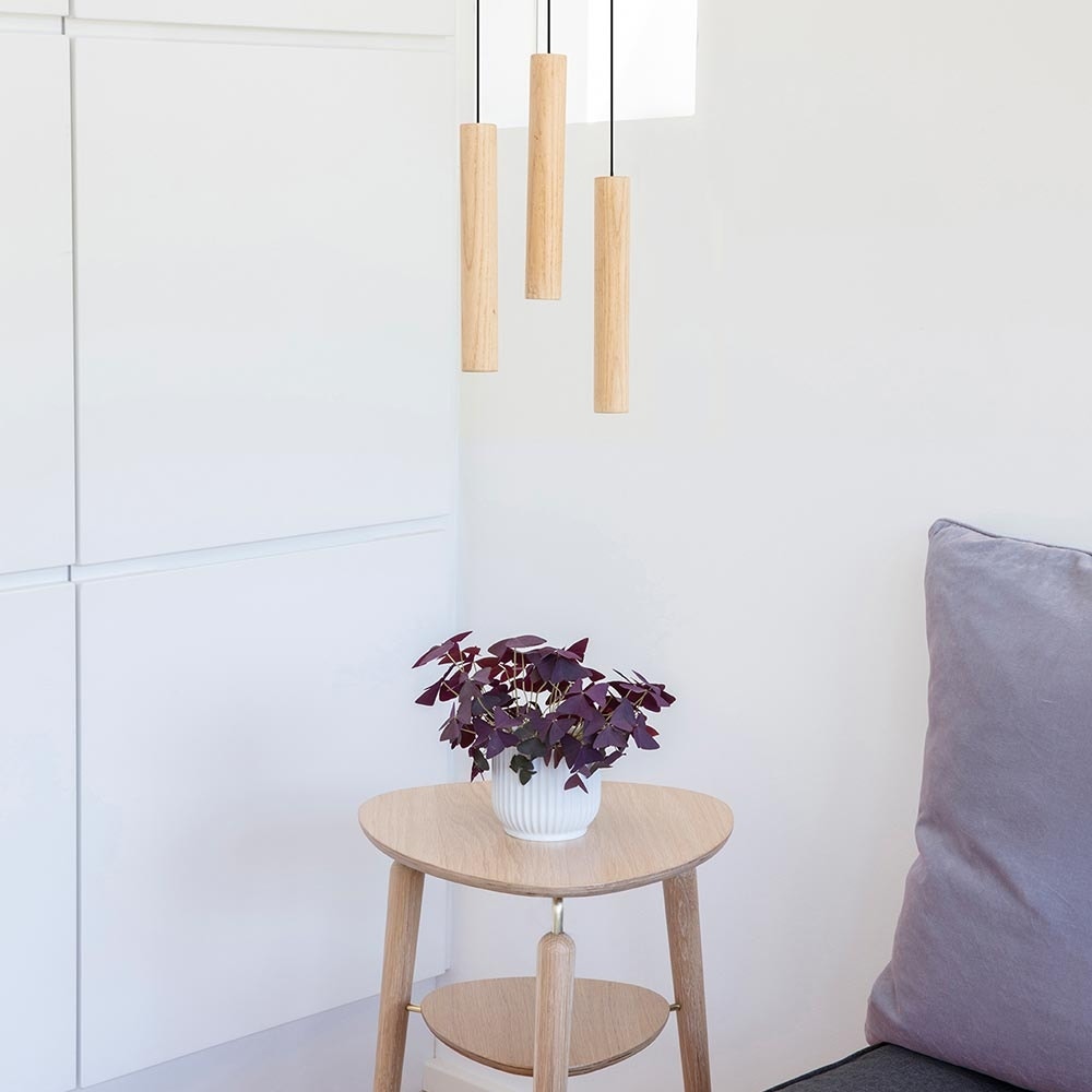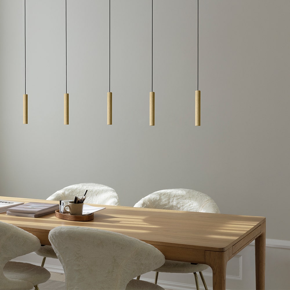 De Chimes eikenhouten hanglamp heeft een minimalistische uitstraling. Het ontwerp van deze lamp is geïnspireerd op de sierlijke lijnen van rijen bomen in het bos. Doordat de lamp gemaakt is van eikenhout past hij in ieder interieur.Deze prachtige minimalistische hanglamp is gemaakt van massief eikenhout. Door de ingebouwde LED-verlichting straalt de lamp warmte uit, waardoor je met deze hanglamp heel gemakkelijk gezellige ruimtes in je interieur creëert. Daarnaast is het ook mogelijk om meerdere Chimes hanglampen bij elkaar te hangen voor een speels effect. Voordelen Een minimalistisch ontwerp Verkrijgbaar in meerdere kleuren Voorzien van een ingebouwde LED lamp Geleverd met een 3 meter lang snoer Ontworpen door Asger Risborg Jakobsen Sfeermaker in huis Geeft een warm licht De finishing touch bij het inrichten van je huis Ideaal om cadeau te geven door de meegeleverde