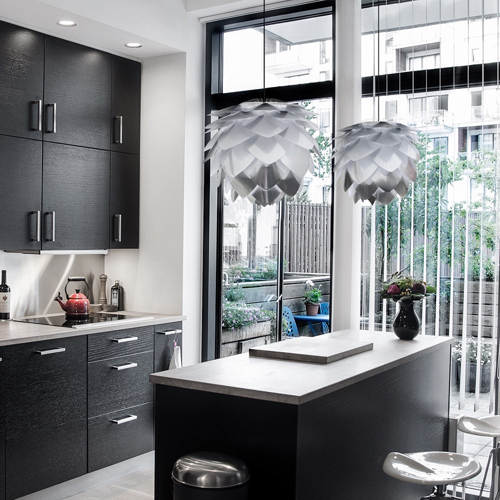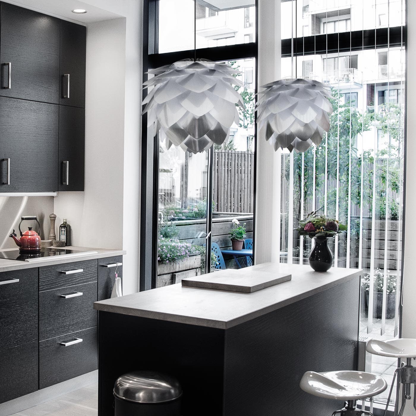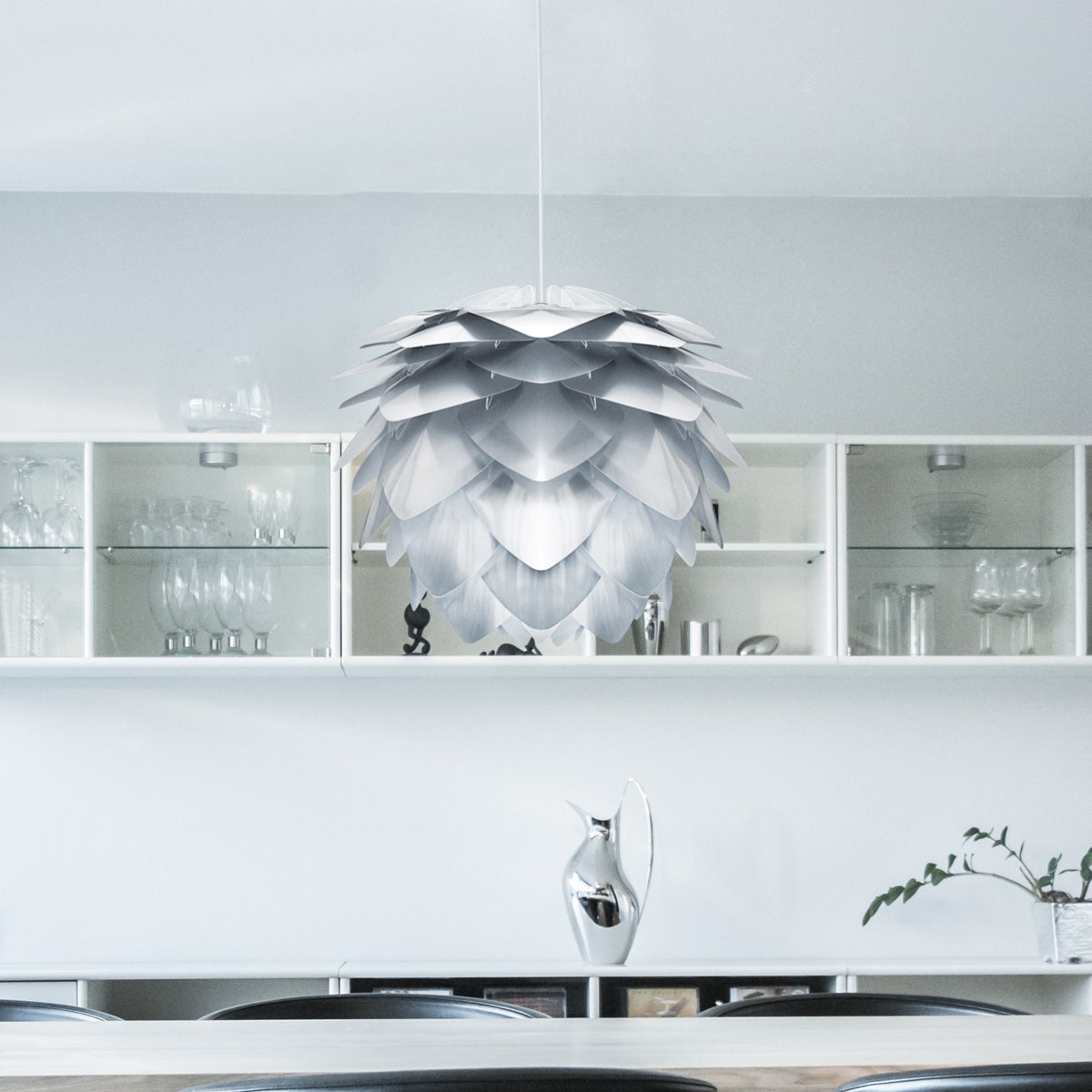 De Aluvia hanglamp is een prachtige toevoeging aan elk interieur. Door de matte aluminium blaadjes krijgt de lamp een strakke, moderne uitstraling. De Aluvia hanglamp van Umage heeft een matte afwerking. Dit zorgt ervoor dat de hanglamp een zeer moderne look & feel krijgt. De conische vorm van de kap, zorgt ervoor dat de hanglamp in bijna elk modern interieur past. Voor meer informatie bekijk hier de montagevideo. Voordelen Een moderne hanglamp met een matte afwerking Geleverd met koordset Voorzien van een E27 fitting (Lichtbron wordt niet meegeleverd) Gemakkelijk schoon te maken