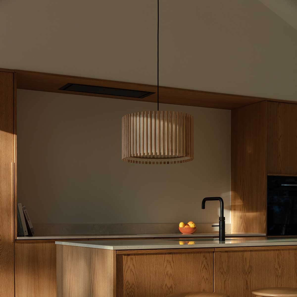 Haal de natuur in huis met de Komorebi Medium lampenkap van Umage. Deze bijzondere lampenkap is gemaakt van houten lamellen en textiel. Deze combinatie van materialen zorgt voor de ultieme natuurlijke uitstraling. Het licht vindt zich een weg tussen de verticale houten latjes door en hult de ruimte in een warme gloed. Deze ronde lampenkap is te gebruiken als hanglamp en als tafellamp met de verschillende verlichtingsonderdelen van Umage, dus je kan hem overal in huis gebruiken. Met verschillende kleuren en formaten is de Komorebi Medium lampenkap de ideale toevoeging aan elk interieur! Voordelen en tips Design lampenkap Gemaakt van massief eikenhout en textiel Opening voor een E27 fitting voor LED lichtbron (max 15W) Exclusief lichtbron Verkrijgbaar in diverse kleuren, formaten en variantenTe gebruiken als hanglamp, vloerlamp en tafellamp Let op: dit is enkel een lampenkap