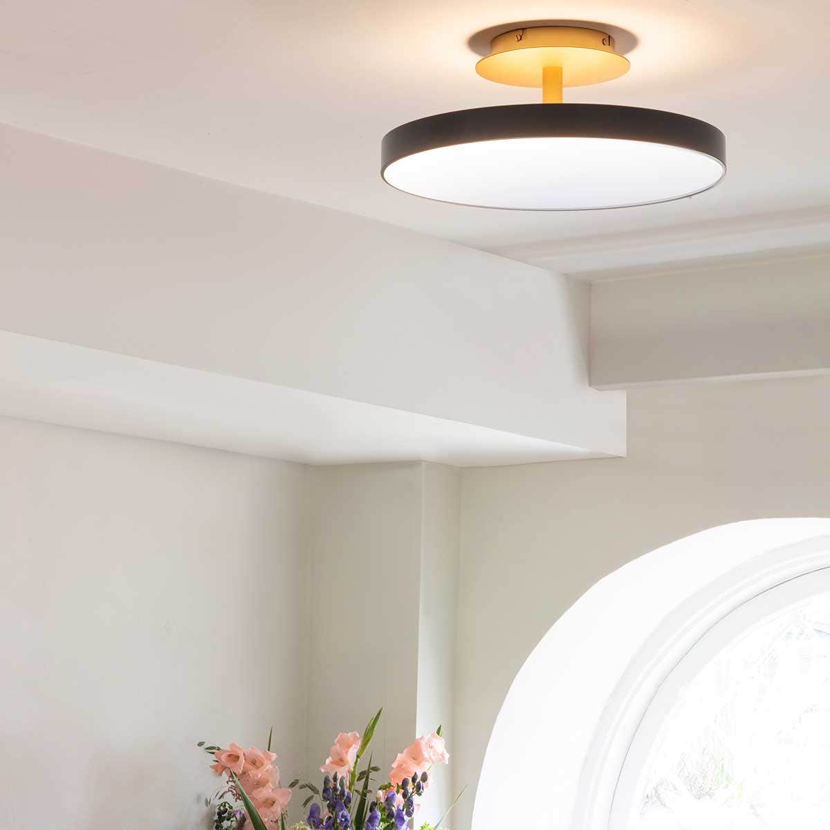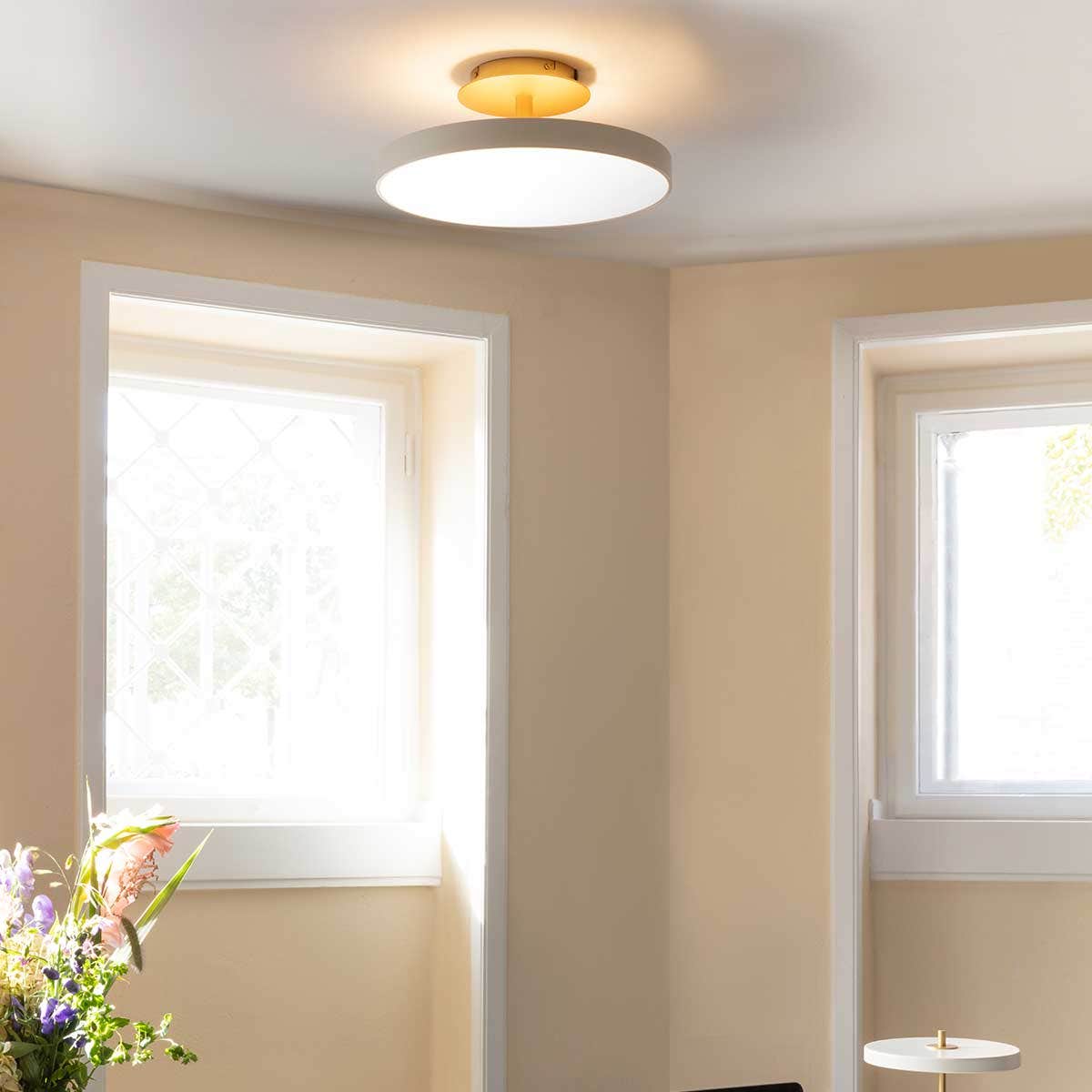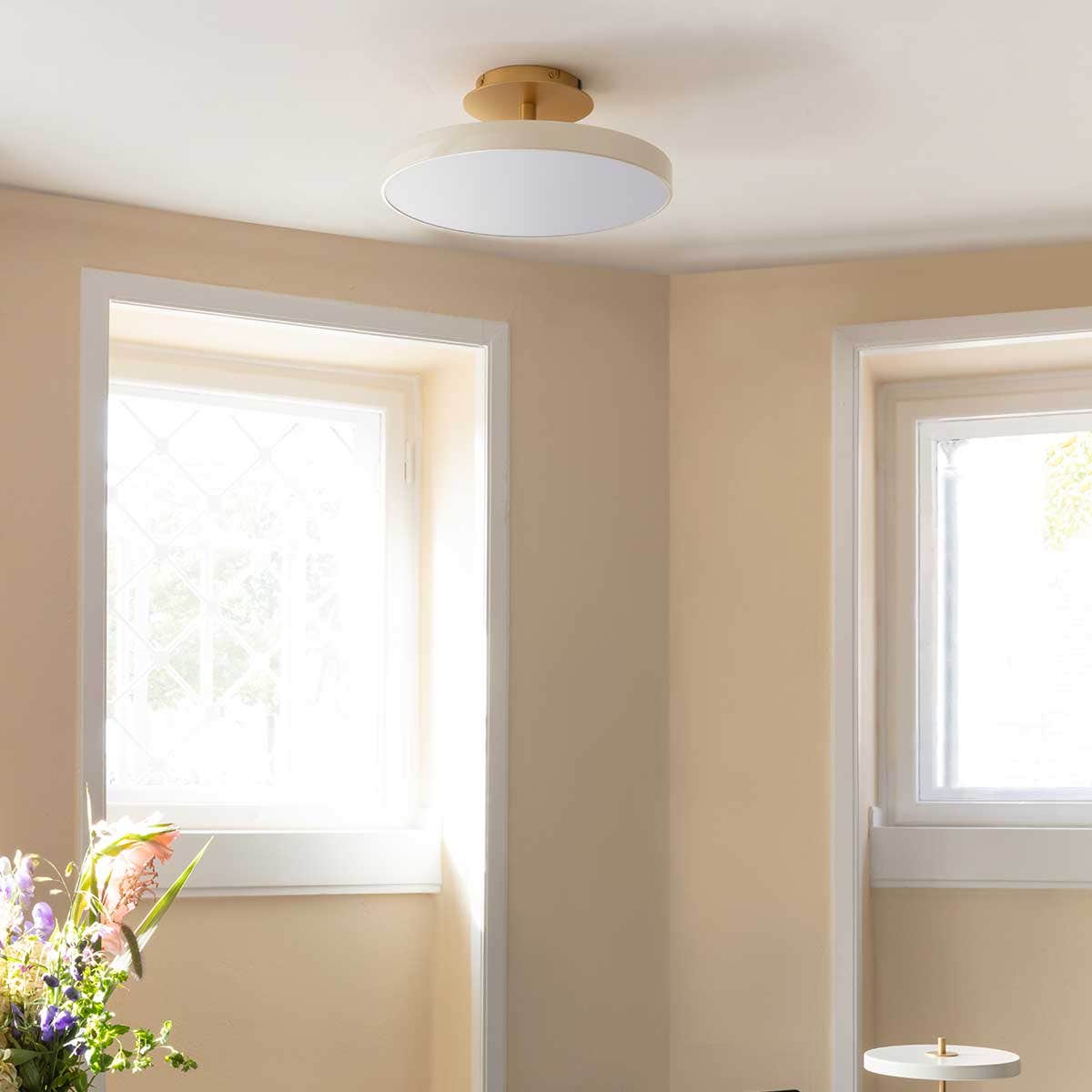De Asteria Up Medium plafondlamp van het merk Umage is geschikt voor iedere ruimte. Deze moderne plafondlamp is zowel een functionele toevoeging aan jouw verlichting als een stijlvolle blikvanger in de ruimte. De lampenkap is bevestigd aan een goudkleurige basis, wat het design van deze plafondlamp een stijlvolle touch geeft. De ronde lamp zorgt voor sfeerlicht zowel naar onderen als naar boven, wat de ruimte op een fijne manier verlicht en een zachte lichtbundel op het plafond werpt. Deze lamp is bovendien ontworpen met een LED bron en een dimfunctie, zodat je het juiste licht voor elke setting kan bepalen. De Asteria Up plafondlamp is verkrijgbaar in diverse kleuren en twee verschillende afmetingen. Voordelen en tips Moderne plafondlamp Ontworpen met geintegreerde LED lichtbron (17W, 1100 lumen) De lamp is dimbaar met een externe dimmer Verlicht zowel de ruimte als het plafond Goudkleurige base voor een