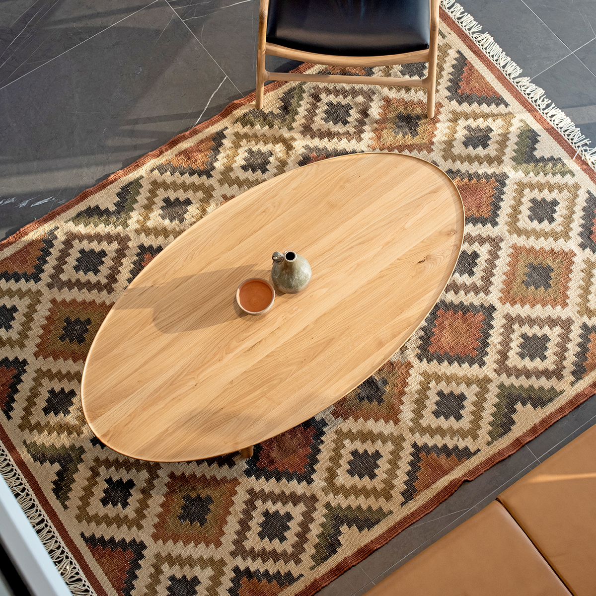 Yumi ovale houten salontafel zwart 130 x 65 cm