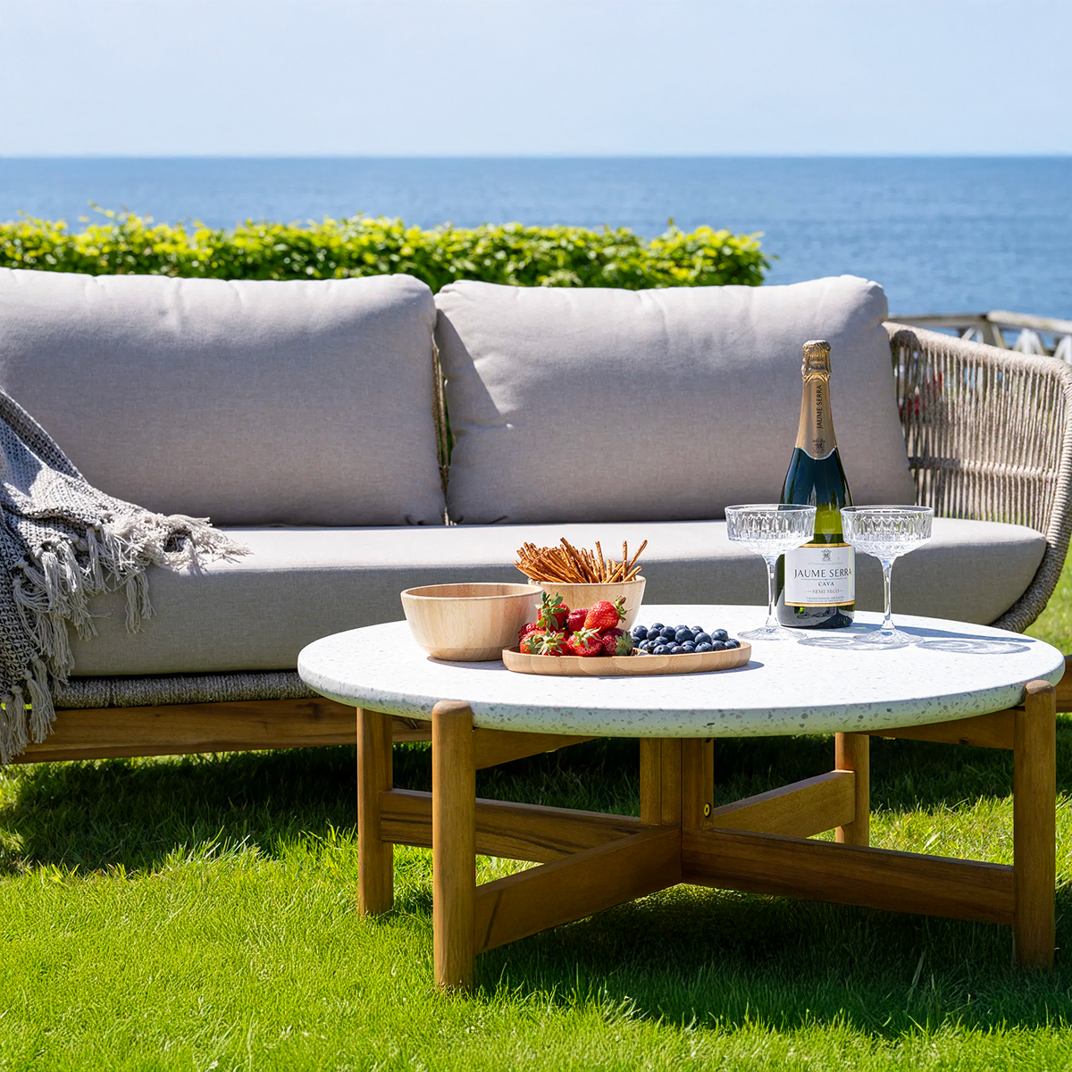 Teresa houten tuin salontafel naturel met terazzo blad Ø 85 cm
