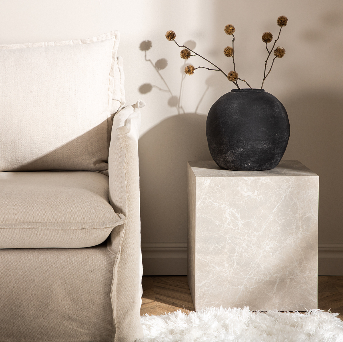 De Zayn bijzettafel van het merk Nest living is een echte eyecatcher in jouw woonkamer. Dankzij de stoere marmerlook en vierkante vorm geeft de Zayn bijzettafel een moderne uitstraling aan je interieur. De beige kleur zorgt voor een warme en uitnodigende sfeer, en zorgt er daarnaast voor dat deze handige bijzettafel in elk interieur past. Gebruik het marmerlook tafeltje  als bijzettafel naast de bank, als nachtkastje in de slaapkamer, of als decoratief element in de hal. De veelzijdigheid maakt het een waardevolle toevoeging aan elke kamer. Voordelen en tips: Kubus bijzettafelGemaakt van hout en afgewerkt met marmerlook De beige kleur past bij veel woonstijlen Stoer design dat opvalt in je interieur Licht van gewicht dus gemakkelijk te verplaatsen in huisTip: gebruik Zayn ook als plantenzuil voor je favoriete kamerplant