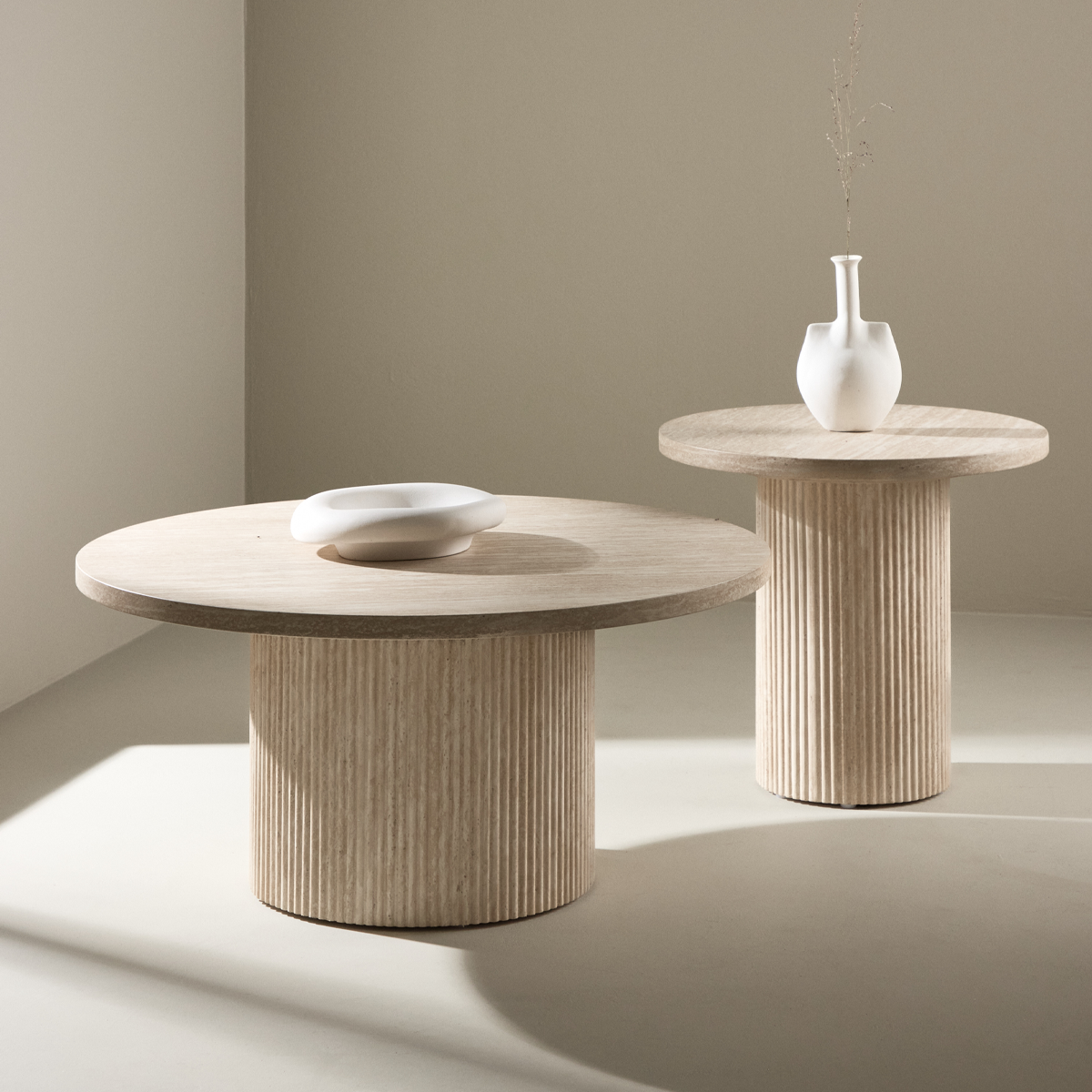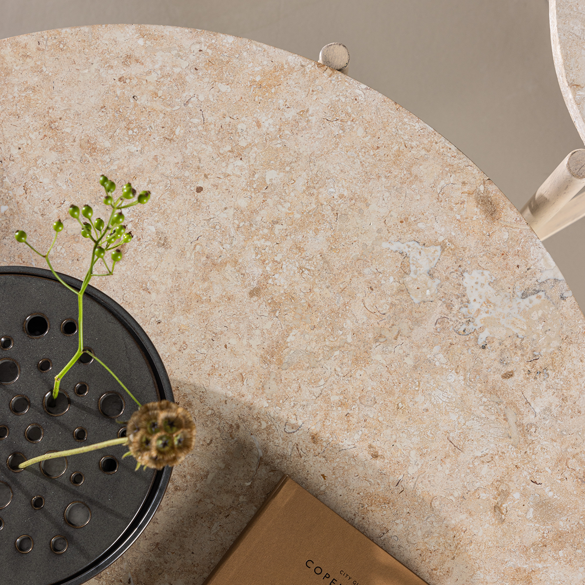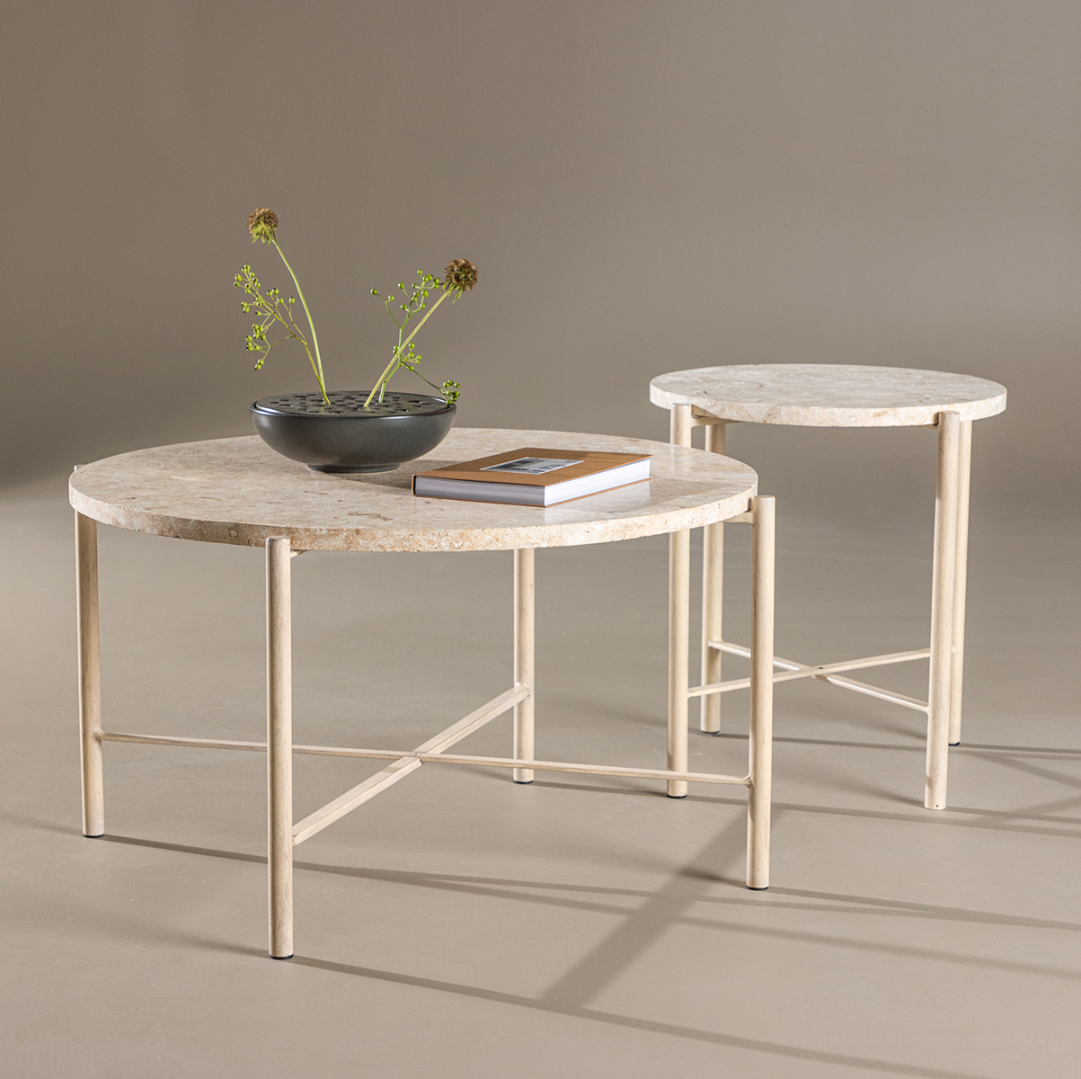 Thora ronde salontafel beige met stenen blad Ø 70 cm