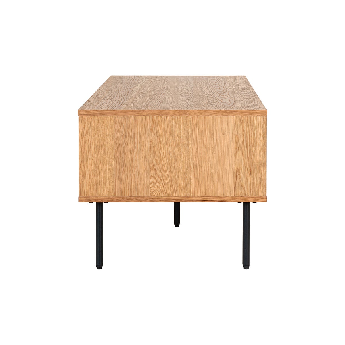 De Lenn salontafel is een stijlvolle en praktische houten koffietafel van Olivine. De salontafel is gemaakt van hout en is afgewerkt met een laag eiken fineer. De poten en de handvaten op de schuifdeurtjes zijn gemaakt van metaal en hebben een zwarte kleur. De salontafel biedt veel opbergruimte achter de twee schuifdeuren. Zo houd je de afstandsbediening, onderzetters en tijdschriften bijvoorbeeld uit het zicht maar toch bij de hand. De verticale latten op het hout en de ronde vorm zorgen dat het meubel eruit springt in je interieur, net als de andere meubels uit de Lenn serie van Olivine. De Lenn houten salontafel is verkrijgbaar in twee kleuren: naturel eiken en wit eiken. Past dit tafeltje perfect bij jouw woonstijl? Combineer het dan met de andere meubels uit de Lenn serie van Olivine. Voordelen Houten tv-meubel met opbergruimte Trendy design met ovale vorm De ovale vorm breekt de standaard rechte lijnen in
