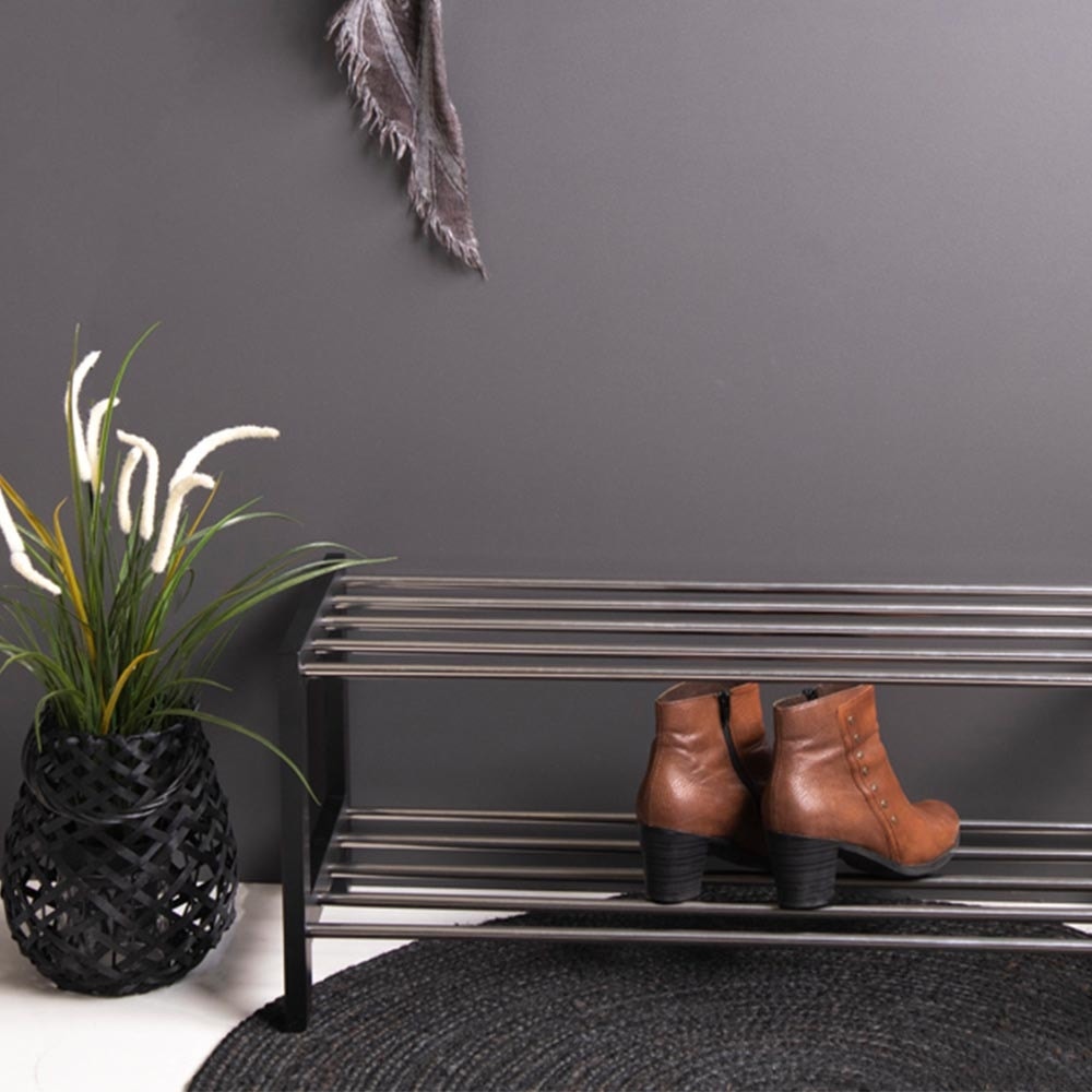 Geen plek meer voor al die schoenen in de hal? De Alvar schoenenplank van Nest Living is hier om je te helpen! Met zijn compacte formaat van 67,3 x 30 cm en strakke ontwerp is hij de perfecte oplossing voor een georganiseerde entree of garderobe. Deze praktische schoenenplank, gemaakt van stevig metaal, biedt ruimte aan jouw favoriete sneakers, laarzen of instappers en houdt ze netjes op hun plek. Het minimalistische design past moeiteloos in iedere ruimte en combineert functionaliteit met een vleugje stijl. Of je nu houdt van een opgeruimd huis of gewoon wat extra ruimte wilt creëren, de Alvar schoenenplank is een slimme keuze. Zeg maar dag tegen chaos en hallo tegen een stijlvolle en overzichtelijke hal! Voordelen en tips: Metalen schoenenplank in zwarte kleurCompact formaat: Met 67,3 x 30 cm past deze plank gemakkelijk in kleinere ruimtes zoals een smalle hal of een garderobekast. Ruimtebesparend: Organiseer je