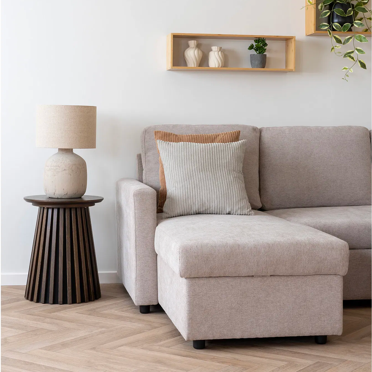 Breng warmte en structuur in je interieur met het Mabel ribstof sierkussen in beige van Artichok.  Dit stijlvolle sierkussen van 45 x 45 cm is gemaakt van zachte ribstof die niet alleen comfortabel aanvoelt, maar ook een moderne en luxe uitstraling heeft. De neutrale beige tint van het kussen past perfect in verschillende interieurstijlen, van Scandinavisch tot boho of modern. Gebruik het sierkussen om de bank op te fleuren en combineer deze met meerdere kussens in diverse kleuren en materialen om een gezellige zithoek te creëren. Voordelen en tips Stijlvol sierkussen voor op de bank of als decoratie Een zachte, duurzame stof met een trendy rib structuur. De beige kleur is makkelijk te combineren met andere kussens of plaids. Perfect voor een gezellige zithoek of als finishing touch op je bed. Met 45 x 45 cm ideaal voor op de bank, stoel of bed.