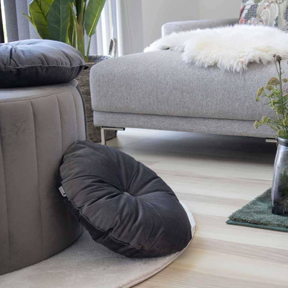 Hannah ronde sierkussen velvet grijs Ø 45 cm