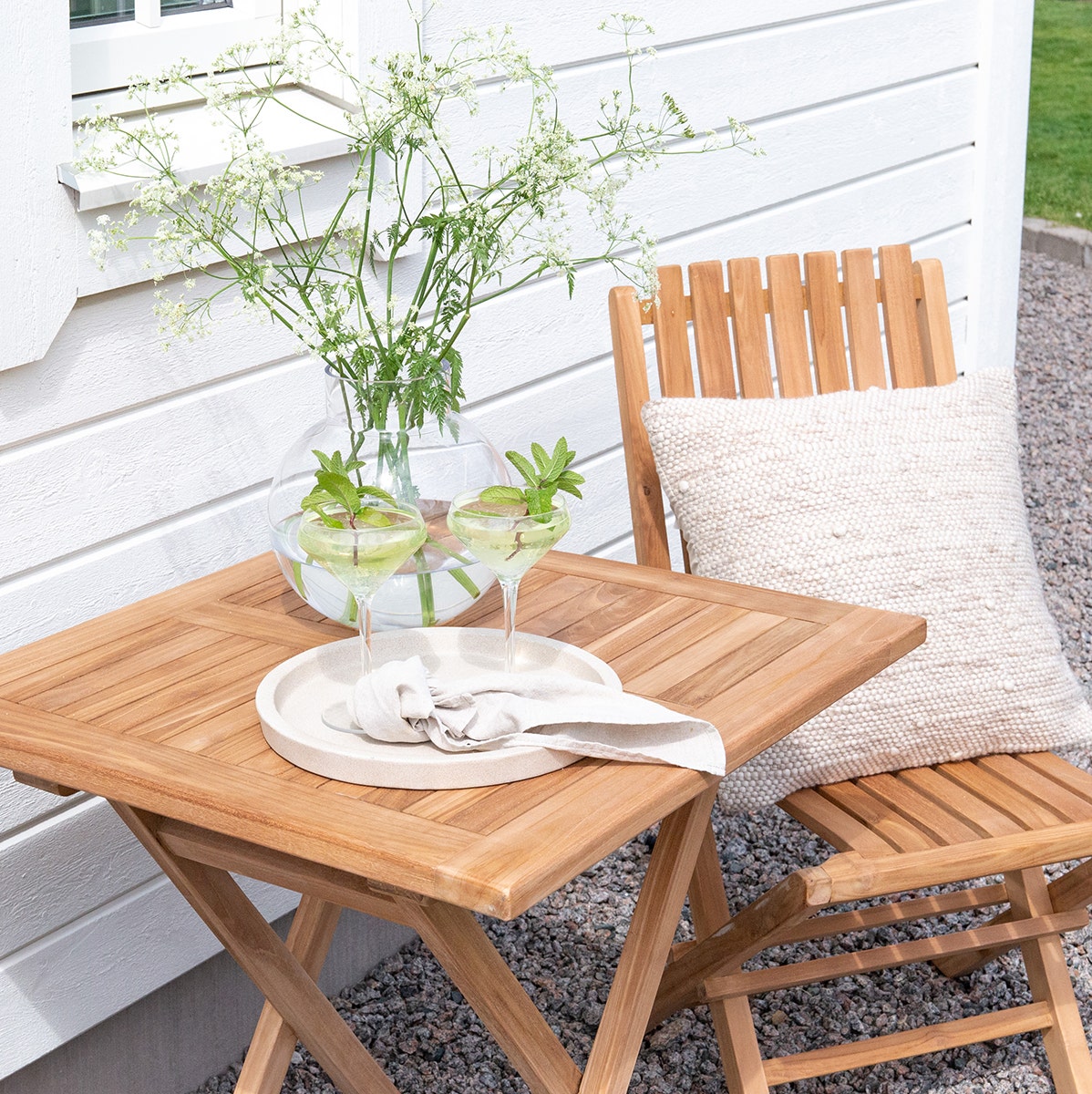 De Joan inklapbare houten tuintafel van Nest outdoor is een handig tafeltje dat je buiten op verschillende plekken neer kan zetten. De houten tuintafel heeft een compacte afmeting en is bovendien inklapbaar, zodat je hem eenvoudig opbergt om ruimte te besparen. De ideale tafel voor een kleine tuin of balkon dus! De Joan tuintafel is volledig gemaakt van teakhout en heeft een warme, natuurlijke uitstraling. Naast de prachtige uitstraling staat teak ook bekend om zijn duurzaamheid en weerbestendigheid. De Joan terrastafel is dus bestand tegen de elementen en gaat jarenlang mee. Om de levensduur te verlengen wordt wel aangeraden de tafel droog op te bergen tijdens de winter. Voordelen en tips Vierkante houten klaptafel voor buiten Gemaakt van duurzaam teakhout Geschikt voor kleine ruimtes dankzij het compacte formaat van 70 x 70 cm Eenvoudig op te bergen dankzij de inklapfunctie Weerbestendig en