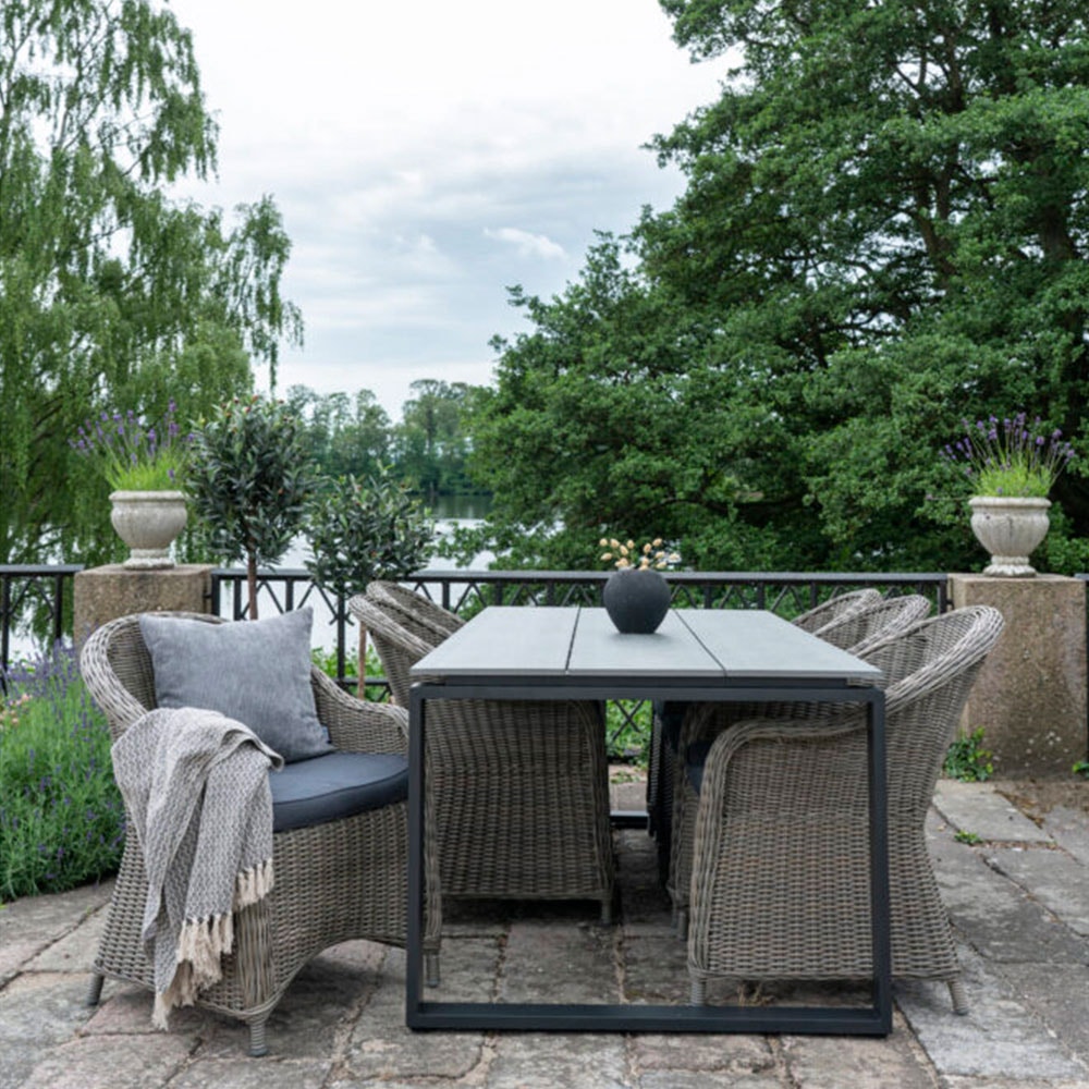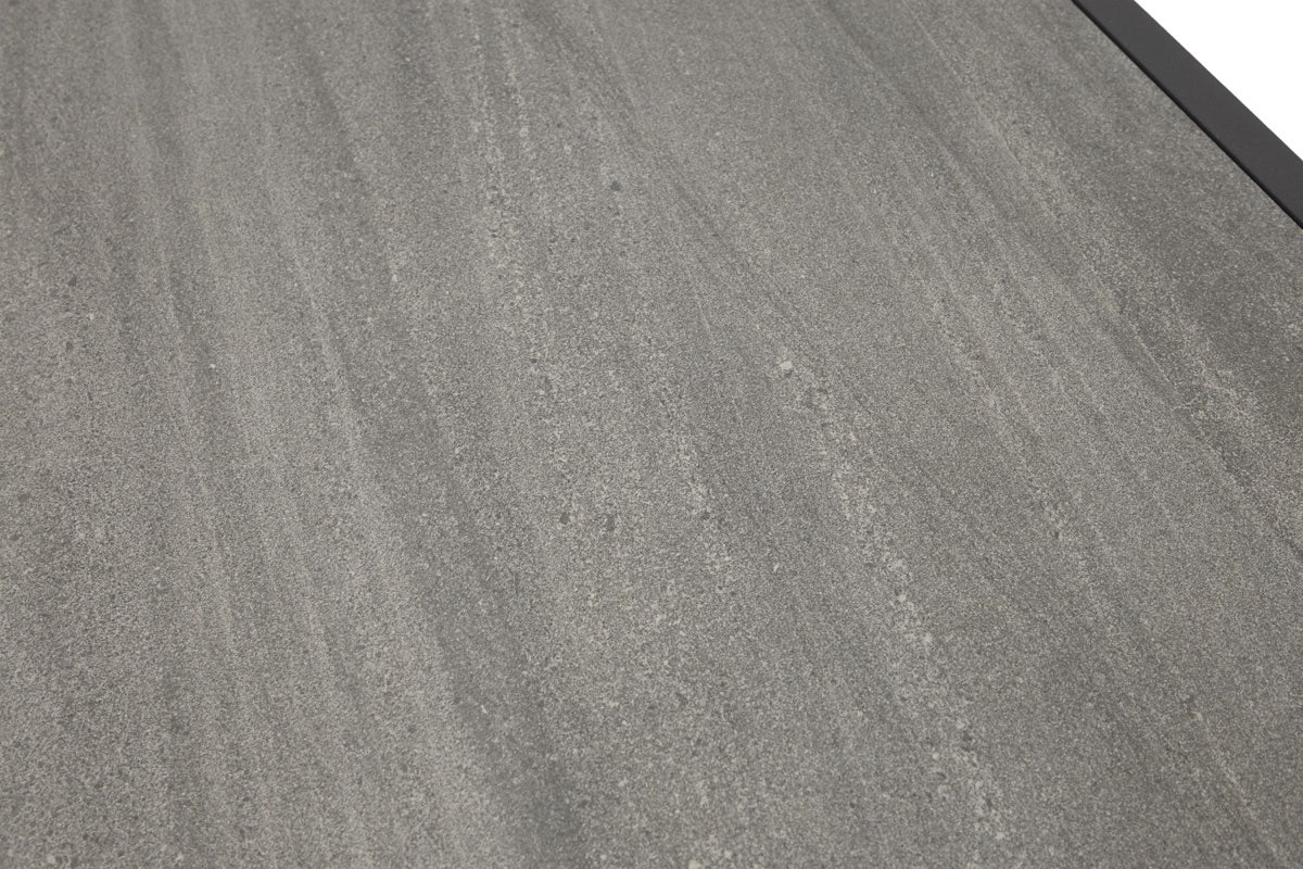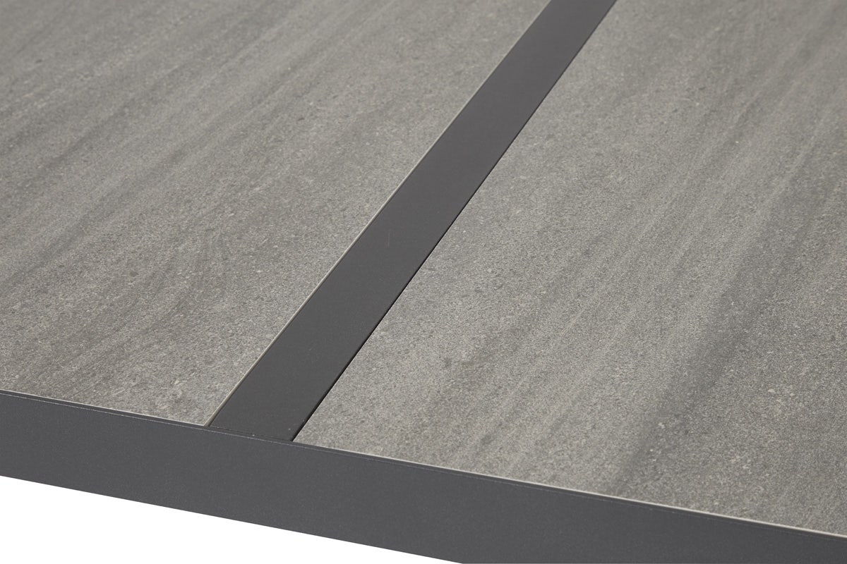 Deze aluminium en keramieken tuintafel Ivar is een stijlvolle toevoeging voor op het terras. Met ruimte voor zes stoelen is deze tafel uitermate geschikt voor een uitgebreide lunch of diner in de tuin. De tuintafel is 195 cm lang, 90 cm breed en 74 cm hoog. De hoogte tot de onderkant van het tafelblad is 69 cm. De tuintafel heeft een frame gemaakt van zwart aluminium en een tafelblad van keramiek. Het tafelblad is in drie gelijke vlakken verdeeld. De Ivar tuintafel is speciaal geschikt voor buitengebruik. Het aluminium frame is licht van gewicht, roestvrij en onderhoudsvriendelijk. Het tafelblad van keramiek is sterk, krasvast en bestendig tegen verkleuring. Omdat aluminium de gevoelstemperatuur van de omgeving aanneemt, wordt de tafel nooit heet door de zon. Vul de tuintafel aan met een paar mooie stoelen en accessoires, en dat wordt zeker weten genieten deze zomer! Voordelen Het keramische tafelblad zorgt voor een luxe