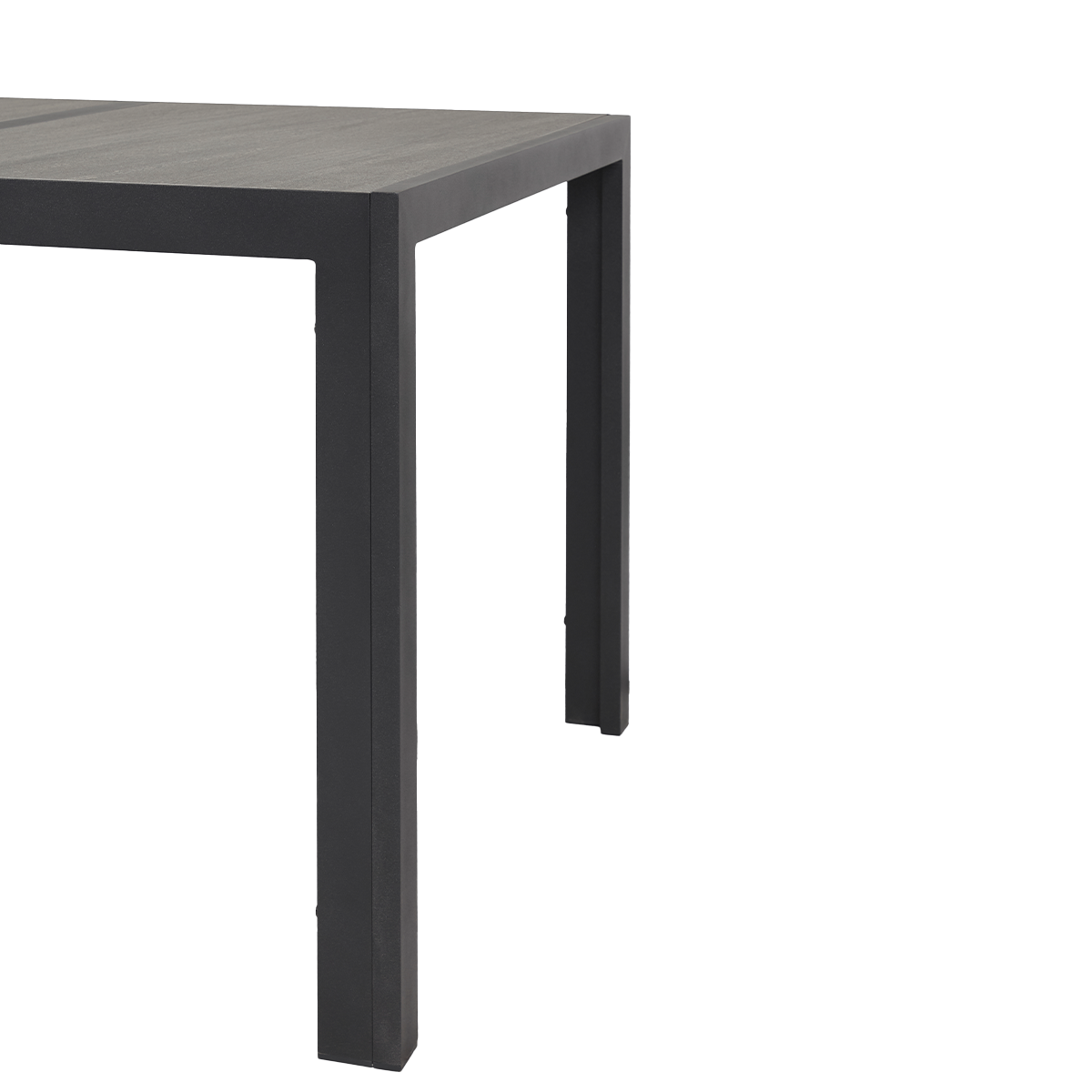 De Stan zwarte tuintafel van Lisomme is een eettafel die speciaal geschikt is om buiten te gebruiken. De aluminium tuintafel heeft een modern ontwerp dat in iedere tuin zal passen. De Stan tuintafel heeft een lengte van 150 cm, een breedte van 90 cm en een hoogte van 74 cm. De onderkant van het tafelblad is 70 cm hoog. Het tafelblad is gemaakt van polywood latjes die elk 9,5 cm breed zijn. Polywood is een duurzame kunststof maar heeft de uitstraling van hout, waardoor je een mooie houtlook tafel hebt. Let op: laat glazen niet te lang in de zon staan op een polywood tafel. Hierdoor kan een vergrootglaseffect optreden waardoor er smeltplekken ontstaan op het tafelblad. Ook hete voorwerpen zoals pannen kunnen niet direct op het tafelblad worden geplaatst. Het frame van de tafel is gemaakt van aluminium, waardoor de tuintafel licht van gewicht is. Met de Stan tuintafel van Lisomme heb je een stevige en strakke tafel voor in de tuin of op het terras, waar je met