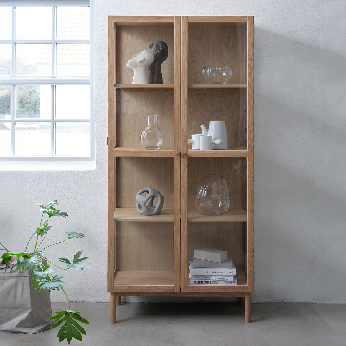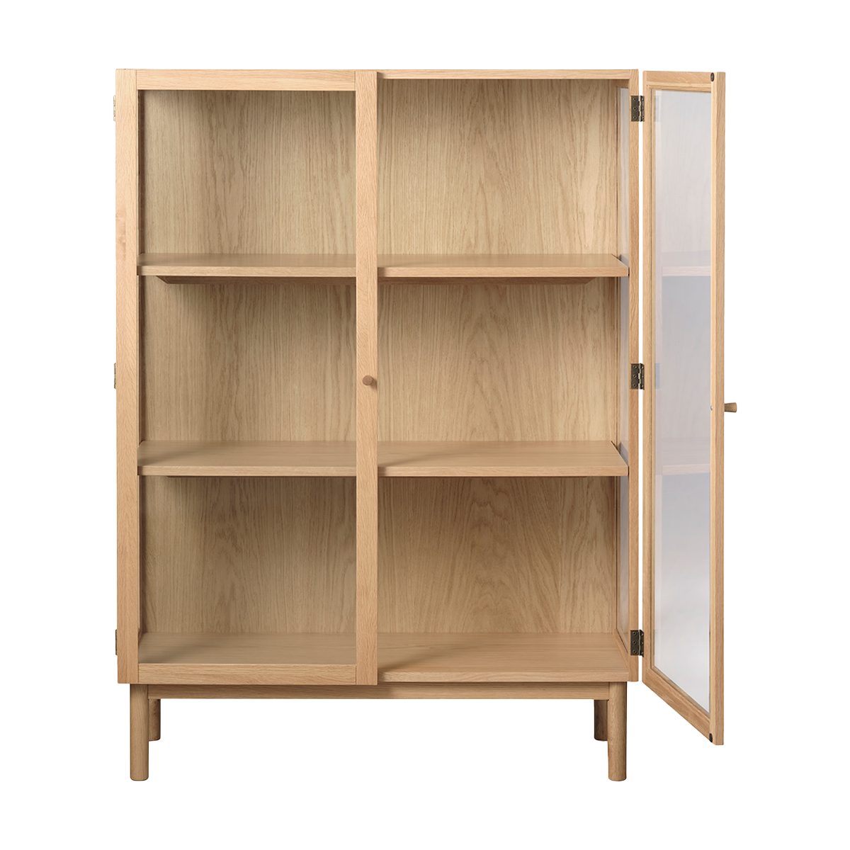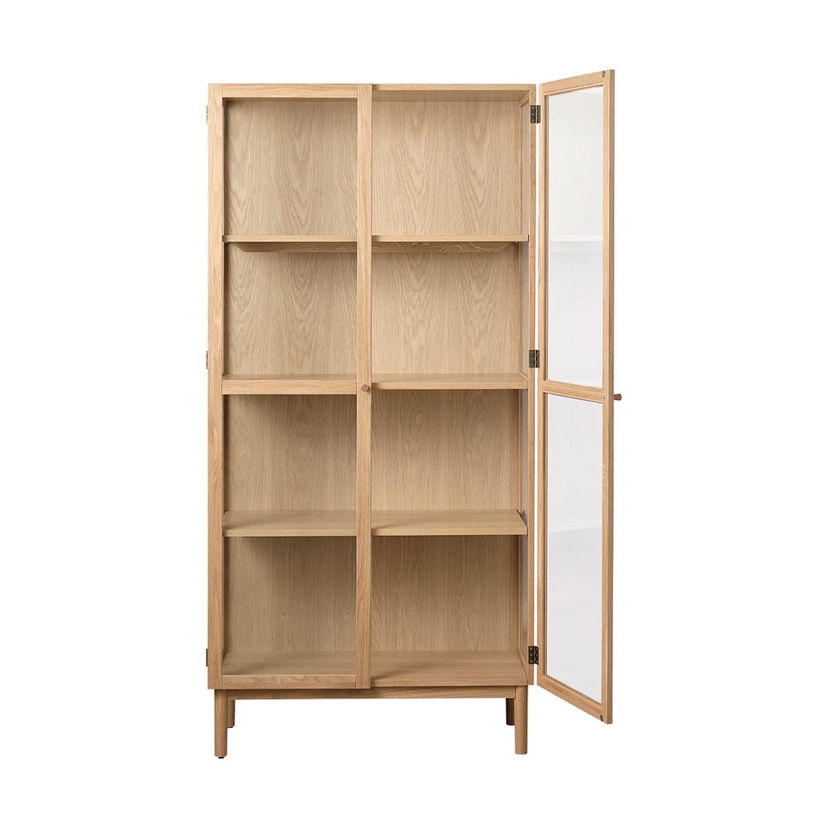 De Boris eikenhouten vitrinekast van het merk Olivine biedt genoeg ruimte om je spullen netjes op te bergen. De kast is gemaakt van hoogwaardig eikenhout en heeft deuren van glas. Dankzij het ruime formaat is er voldoende ruimte om al je spullen te organiseren in deze prachtige glazen kast. De afstand tussen de planken is 39,5 centimeter, maar de planken zijn ook een stukje in hoogte verstelbaar zodat je jouw ideale indeling kan creëren. De verschillende planken bieden veel opbergruimte, waardoor je je mooiste servies, souvenirs van vakantie, tekeningen van de kinderen en kleine plantjes in de kast kwijt kan. Door de glazen deuren zijn je spullen in deze opbergkast bovendien goed te bewonderen. Wil je de spullen juist uit het zicht hebben? Zet dan een aantal mooie manden in de kast. Maak je inrichting compleet met de andere meubels uit de Boris-serie van Olivine. Voordelen en tips Hoge houten vitrinekast met glas Gemaakt van massief