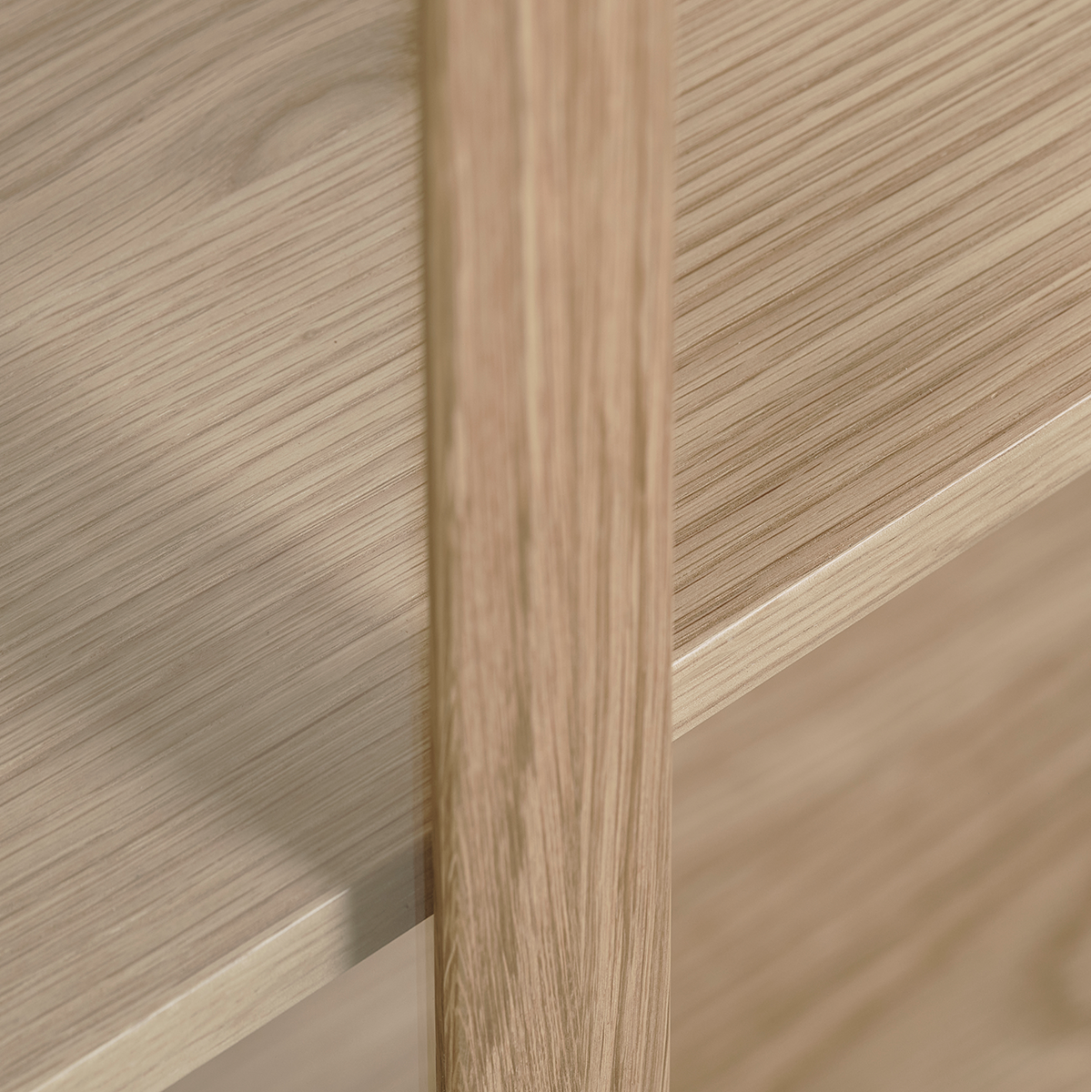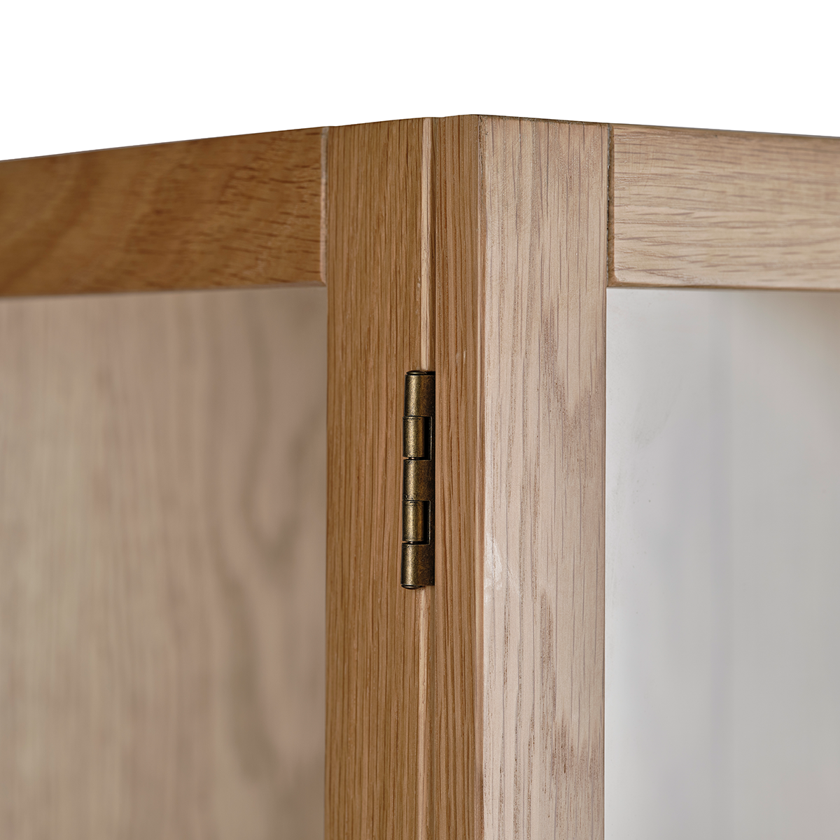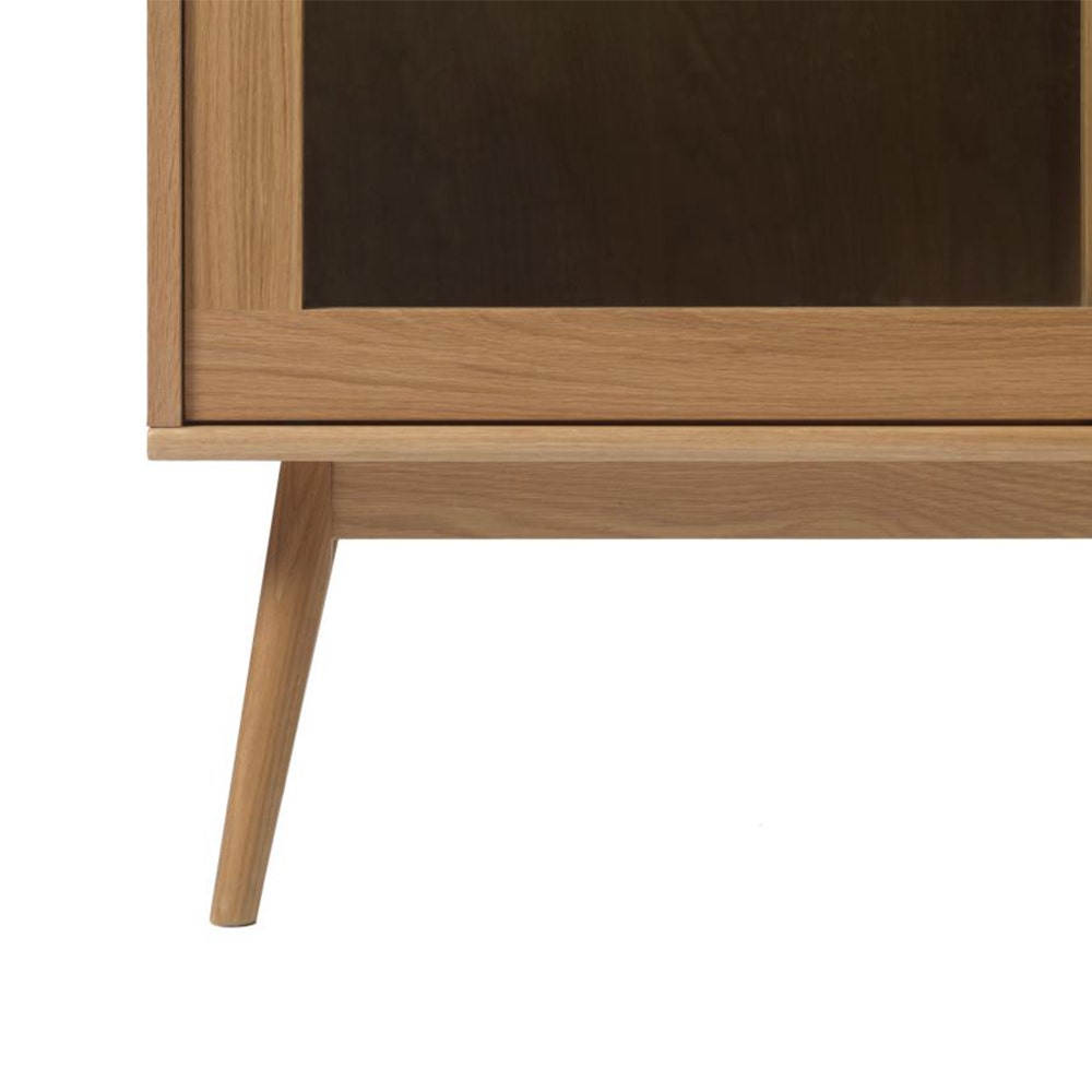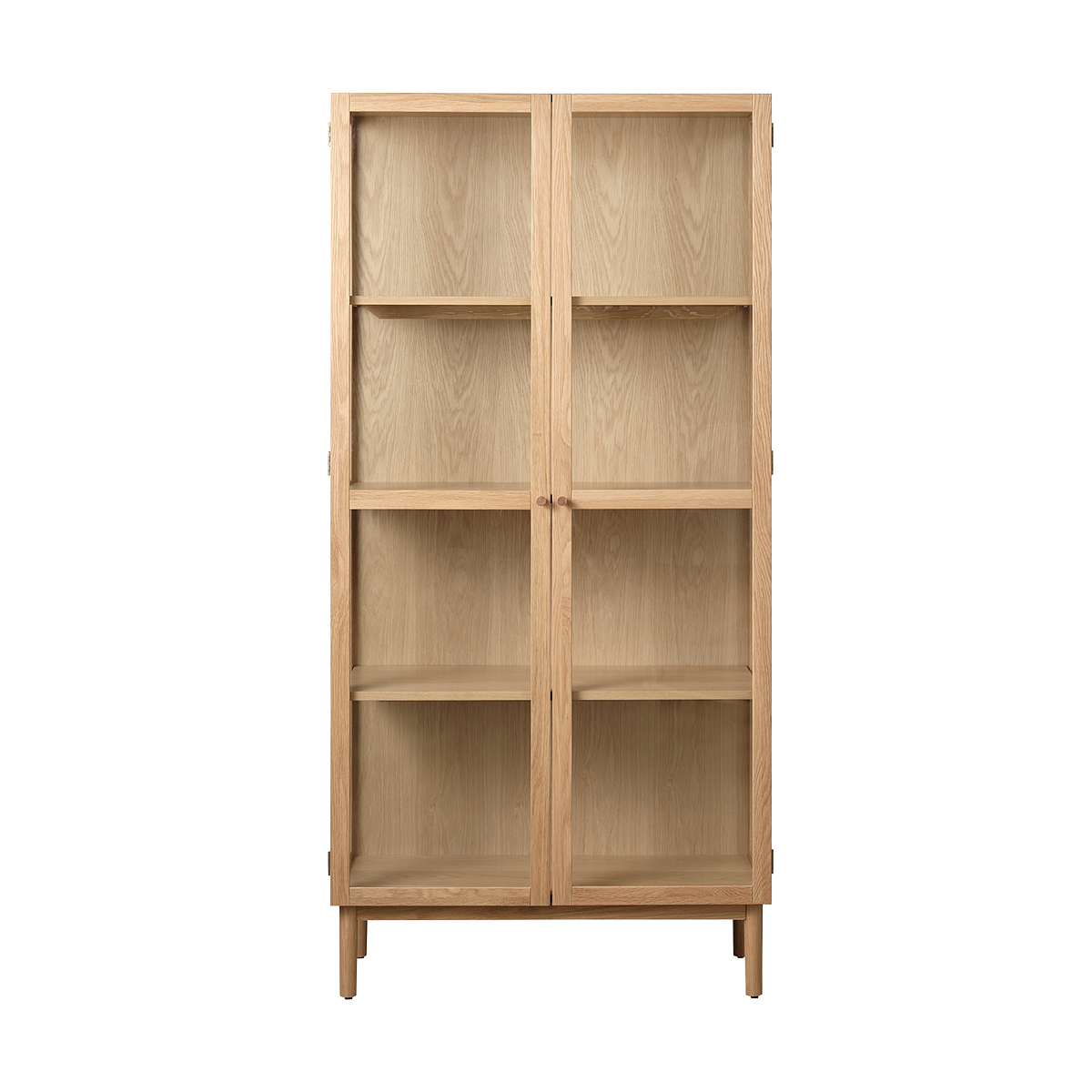 De Boris eikenhouten vitrinekast van het merk Olivine biedt genoeg ruimte om je spullen netjes op te bergen. De kast is gemaakt van hoogwaardig eikenhout en heeft deuren van glas. Dankzij het ruime formaat is er voldoende ruimte om al je spullen te organiseren in deze prachtige glazen kast. De afstand tussen de planken is 39,5 centimeter, maar de planken zijn ook een stukje in hoogte verstelbaar zodat je jouw ideale indeling kan creëren. De verschillende planken bieden veel opbergruimte, waardoor je je mooiste servies, souvenirs van vakantie, tekeningen van de kinderen en kleine plantjes in de kast kwijt kan. Door de glazen deuren zijn je spullen in deze opbergkast bovendien goed te bewonderen. Wil je de spullen juist uit het zicht hebben? Zet dan een aantal mooie manden in de kast. Maak je inrichting compleet met de andere meubels uit de Boris-serie van Olivine. Voordelen en tips Hoge houten vitrinekast met glas Gemaakt van massief
