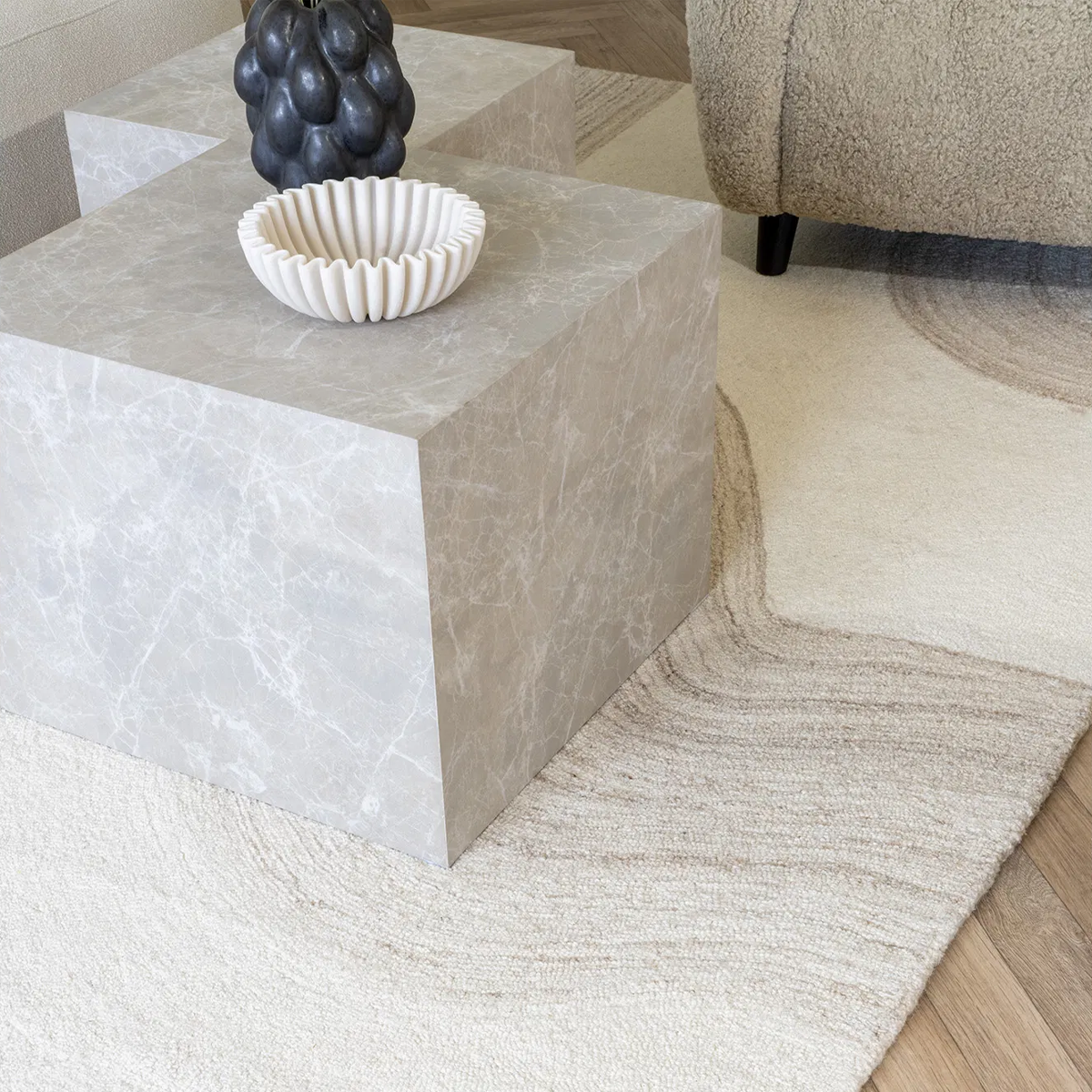 Wil je je interieur een warme en knusse uitstraling geven? Het Caren beige vloerkleed van Artichok is precies wat je nodig hebt! Met zijn royale afmeting brengt dit grote vloerkleed meteen sfeer in je woonkamer, eetkamer of slaapkamer. De prachtige combinatie van beige en ivoor, samen met de speelse golfstructuur, zorgt voor een natuurlijke, rustige look die nooit verveelt. Dit handgetufte vloerkleed is gemaakt van 100% wol, wat betekent dat je niet alleen kiest voor stijl, maar ook voor kwaliteit en duurzaamheid. Het voelt heerlijk zacht aan onder je voeten en is sterk genoeg om jaren mee te gaan. Of je nu houdt van Japandi, Scandinavisch of modern minimalisme, het Caren vloerkleed past overal bij! Voordelen en tips: Stijlvol wollen vloerkleed in aarde tinten zoals beige, licht bruin en ivoor Rustgevend design dankzij het patroon Brengt warmte en comfort in huis en voelt heerlijk zacht aan de voeten Match dit
