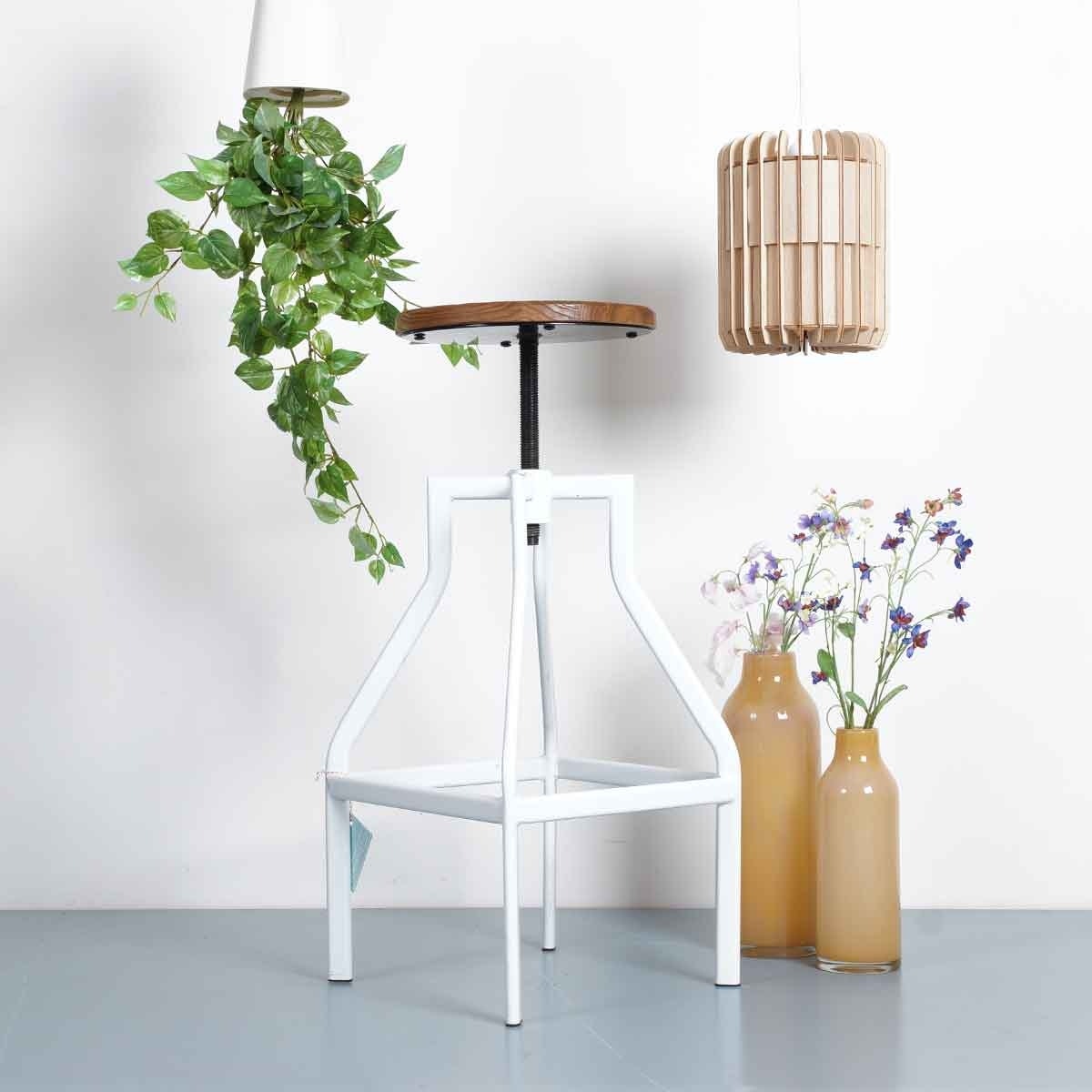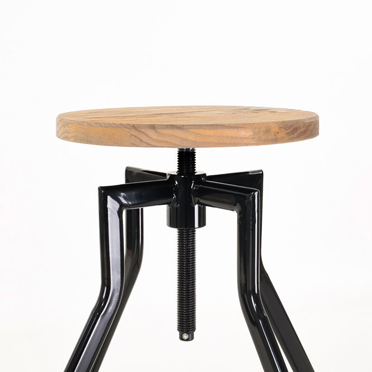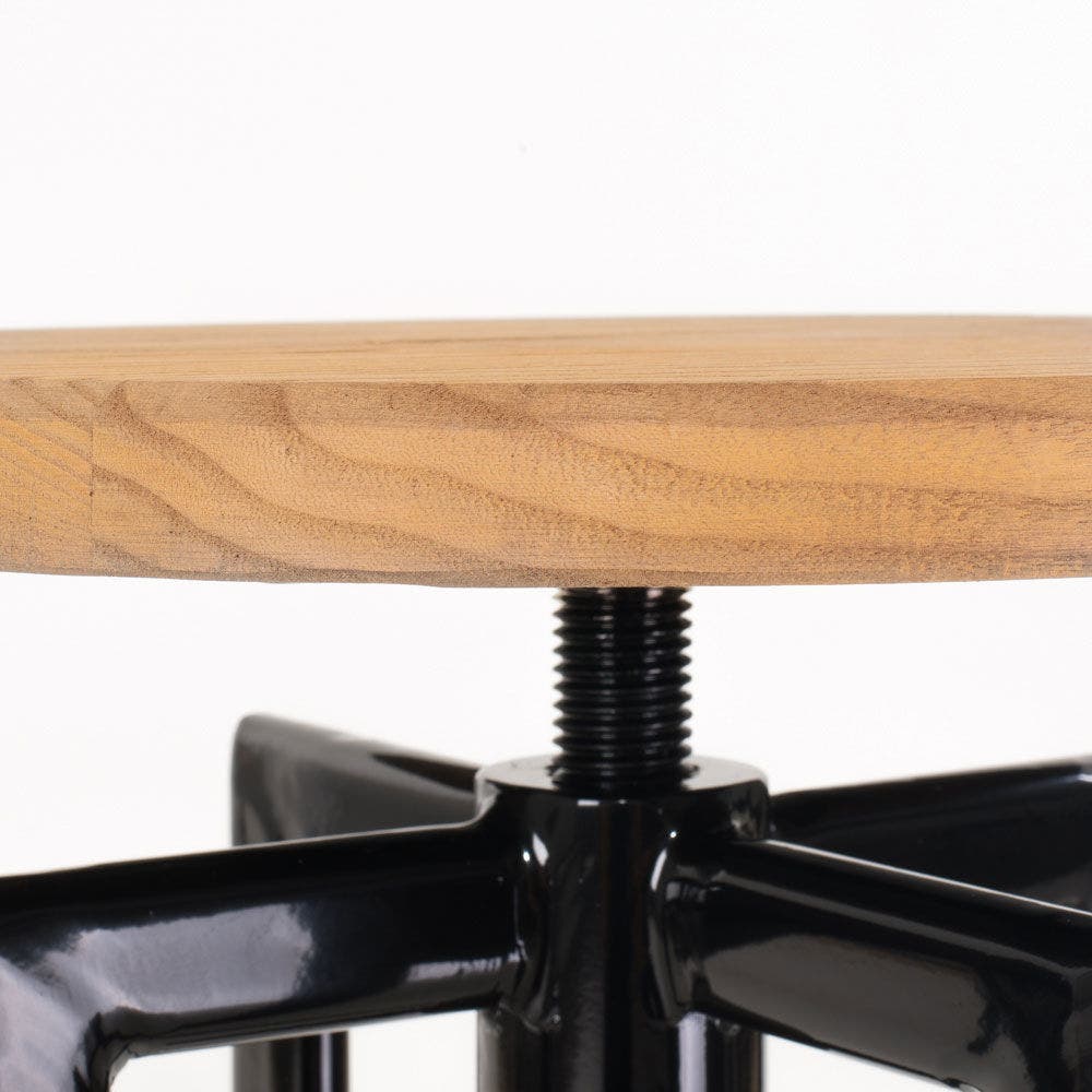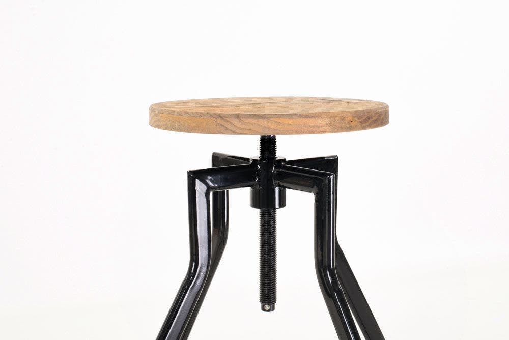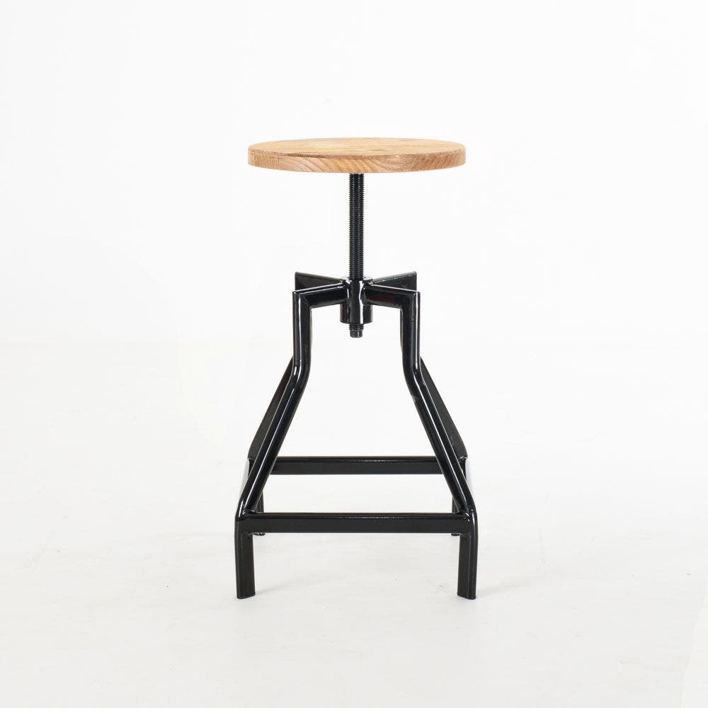 Dit robuuste draaibare krukje met een industrieel uiterlijk geeft een stoere twist aan ieder interieur. Een draaibaar krukje dat voorheen veel gebruikt werd in laboratoria, fabrieken en scholen, is nu getransformeerd tot een stijlvolle zitplaats voor thuis of in een restaurant of bar. Het ontwerp en materialen mix van staal en hout zorgen voor een stoere, industriële uitstraling. De zitting van de het krukje is volledig draaibaar en verstelbaar in hoogte van 66 cm tot 83 cm. Voordelen De kruk is gemaakt van metaal in combinatie met een houten zitting In hoogte verstelbaar tot 83 cm hoog Houten zitting is √ò33 cm Voorzien van stevige rubberen doppen onder de poten, ter bescherming van je vloer Heeft een perfecte zithoogte voor aan de kookeiland of bartafel Geen krassen op de vloer door de stevige rubberen doppen creëer de juiste zithoogte voor aan de bartafel of het kookeiland Licht