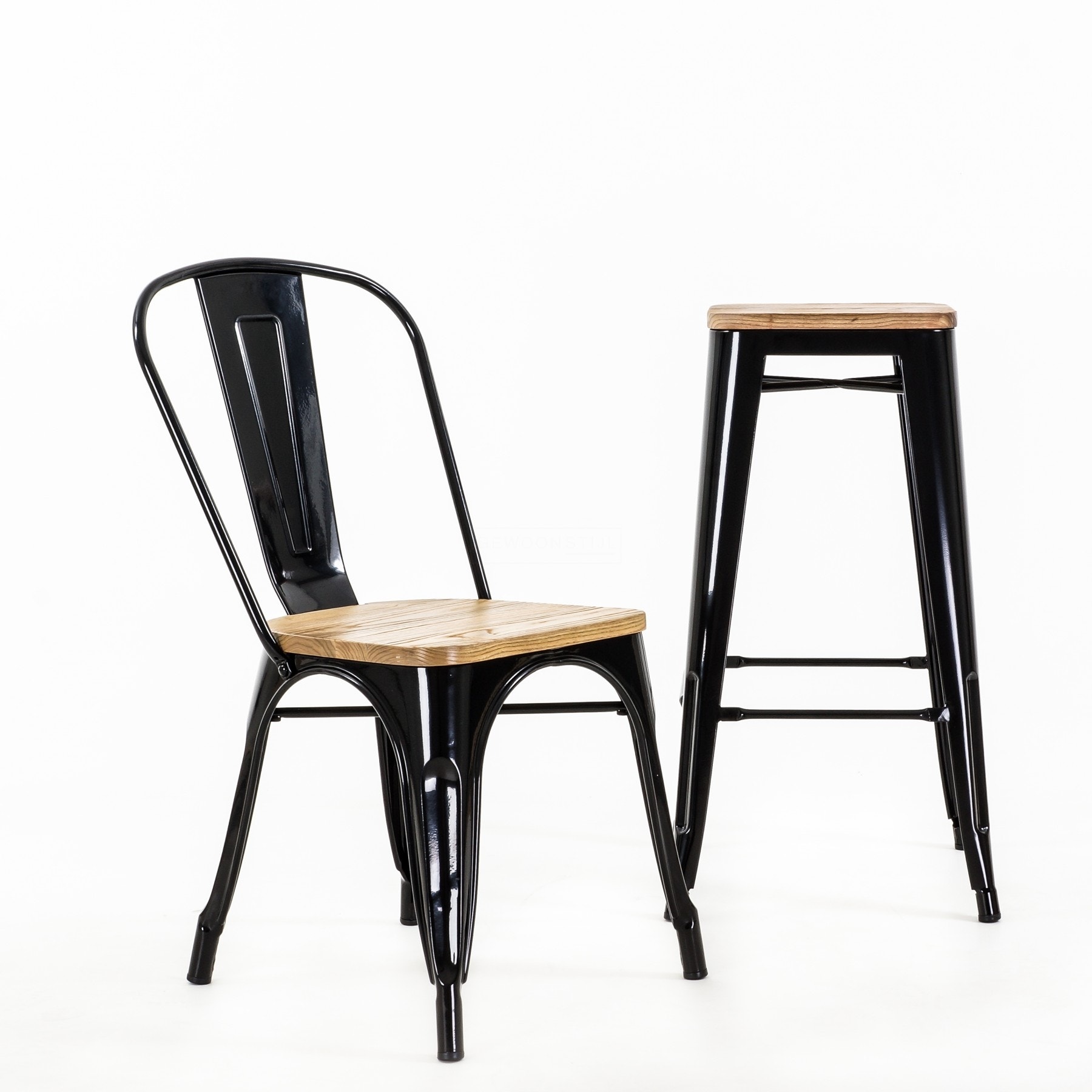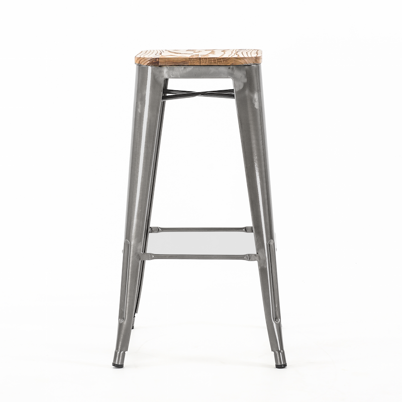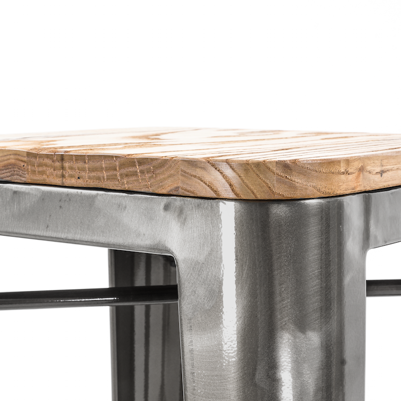 Sfeervol en stoer deze mooie barkruk van Legend is een hedendaagse variatie op de echte design klassieker, dankzij de toevoeging van de houten zitting. De kruk is gebaseerd op het design van Xavier Pauchard en werd destijds onder het merk Tolix in productie genomen. Net als toen is de Legend cafe barkruk retro-stoer, stevig en kan tegen een stootje. Kies de perfecte klassieke kleur (wit, zwart of industrieel metaal) en zet ze aan je (ontbijt-)bar. Deze hoogte is daar perfect voor! Voordelen De barkruk is gemaakt van metaal in combinatie met een houten zitting Verkrijgbaar in meerdere kleuren Voorzien van stevige rubberen doppen onder de poten, ter bescherming van je vloer Heeft een perfecte zithoogte voor aan de bar Stapelbaar tot 10 stuks In dezelfde serie verkrijgbaar: eetkamerstoelen, stoelen met armleuning, lage krukken (45 cm), krukken voor een kookeiland (65 cm). Variaties met houten zitting of