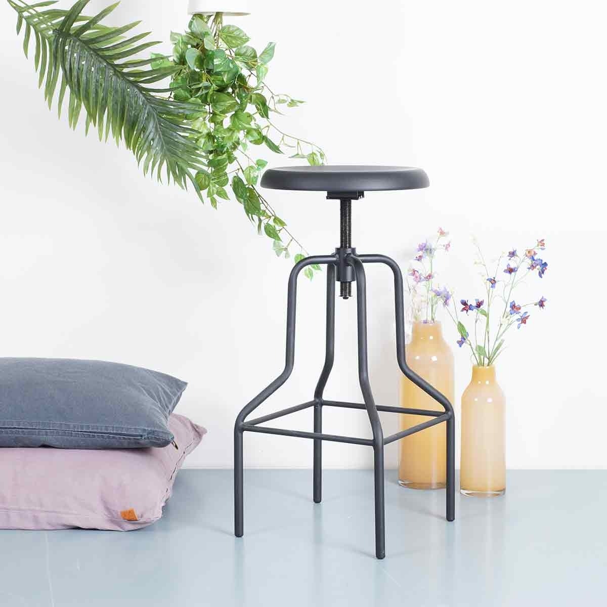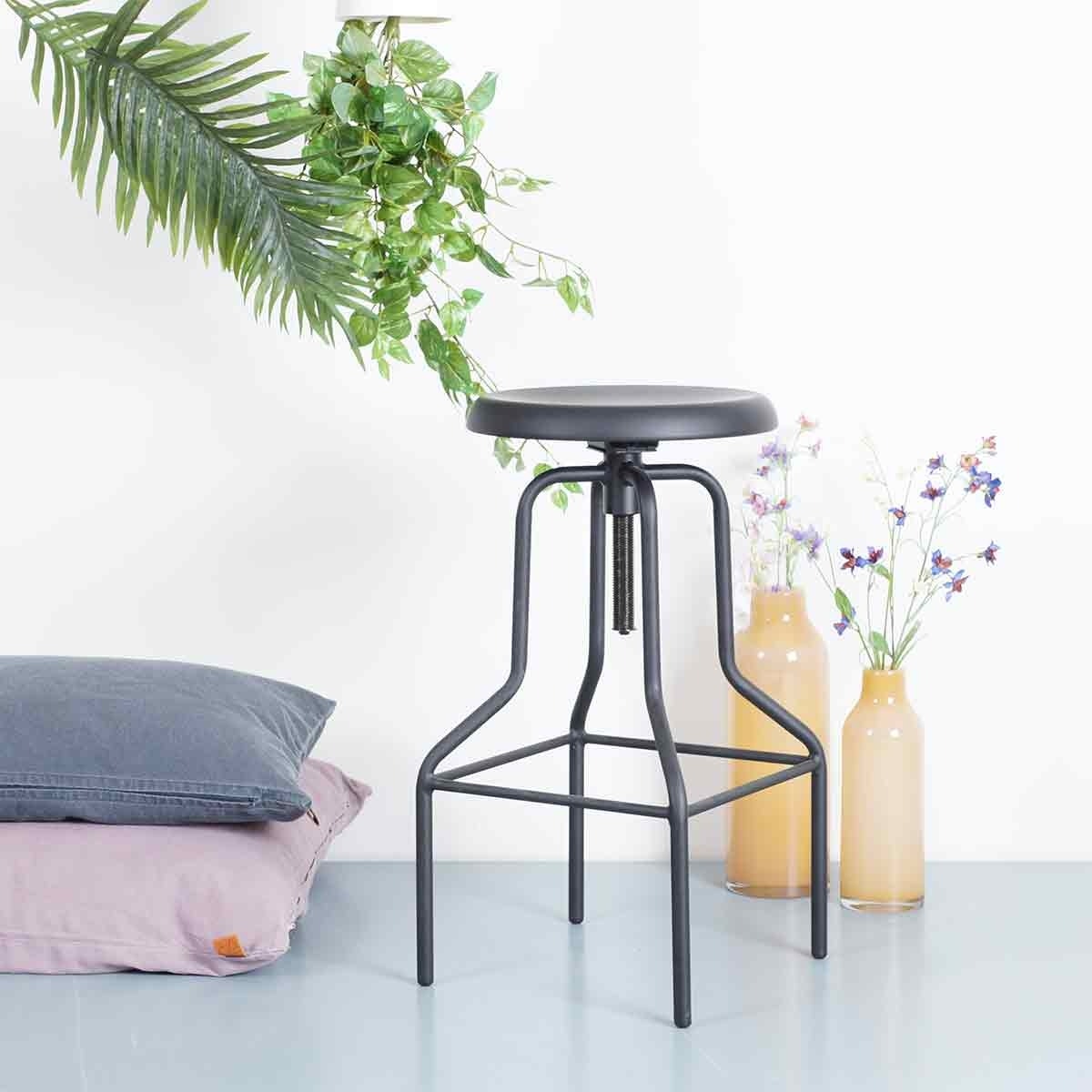 Hoge draaibare kruk zwart in hoogte verstelbaar