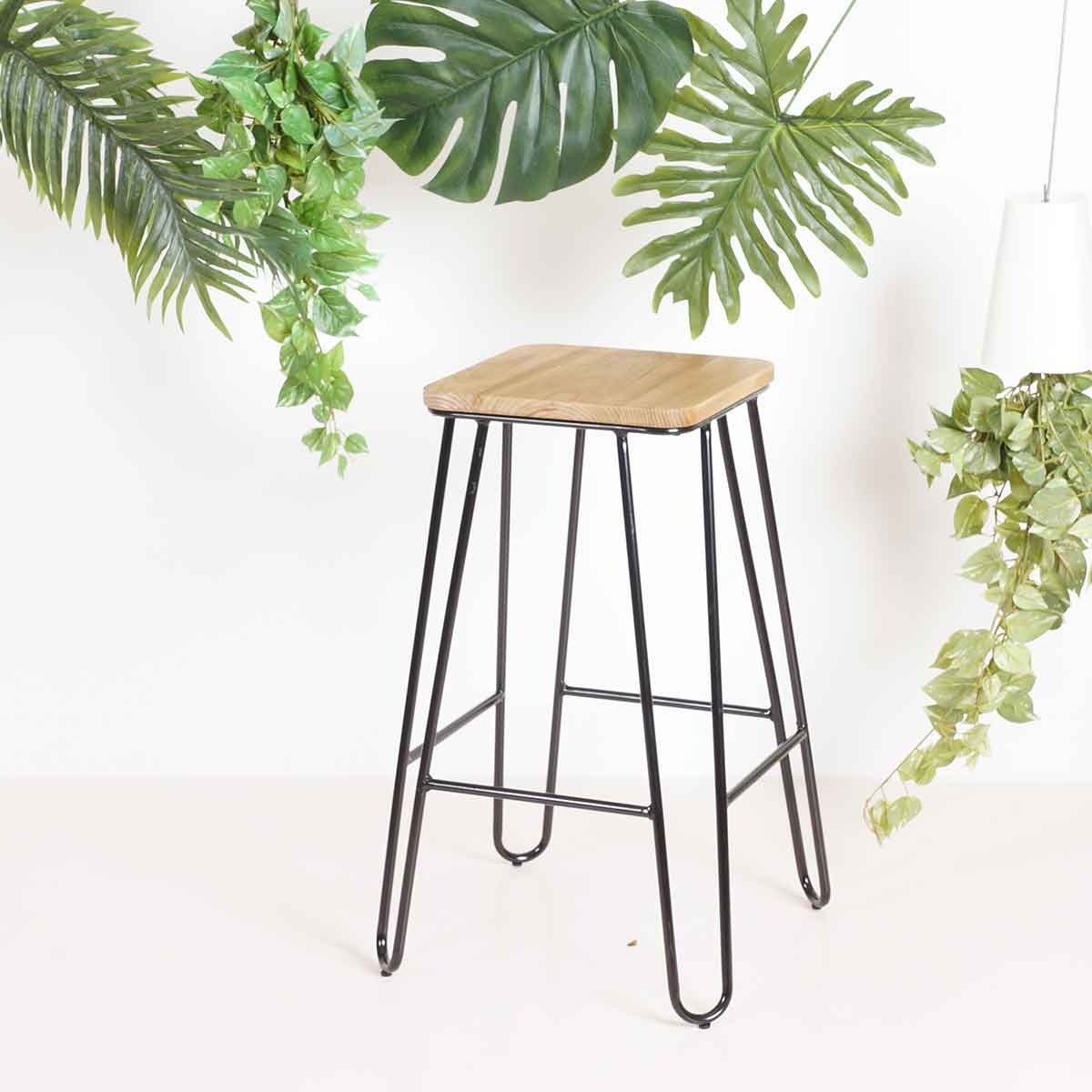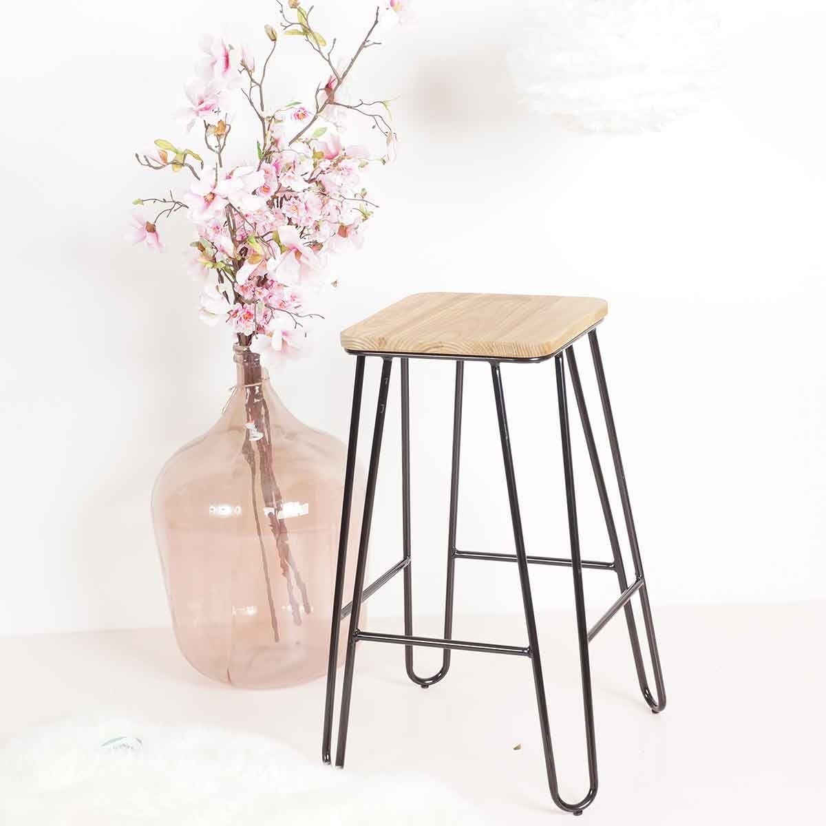 Wire metalen barkruk zwart met houten zitting 65 cm