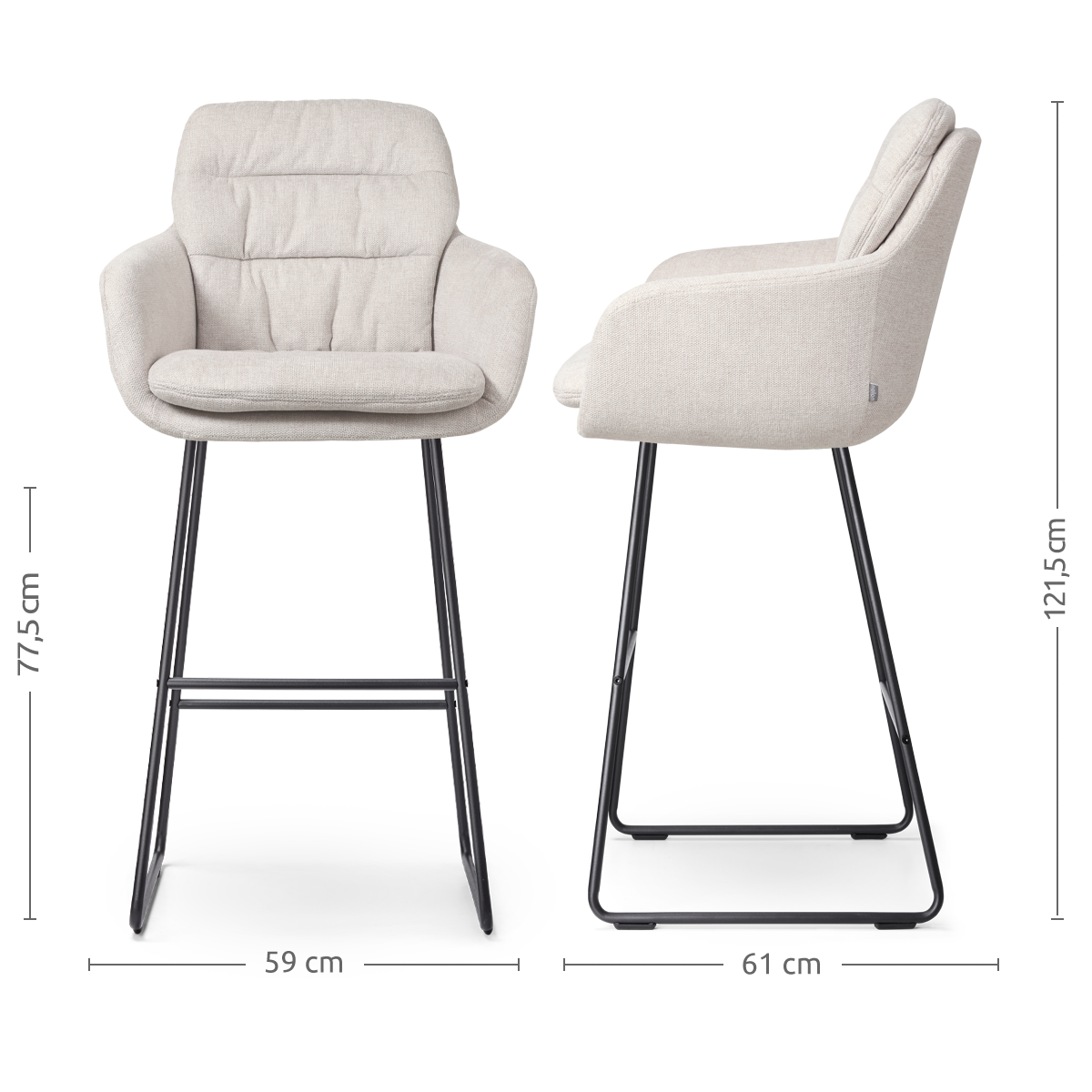 Nino Eef barkruk bouclé beige zwart onderstel 65 cm set van 2