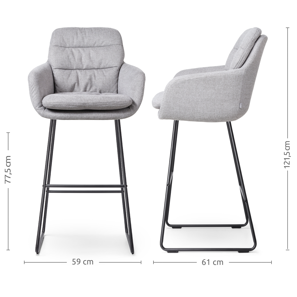 Nino Mia barkruk grijs zwart onderstel 75 cm set van 2