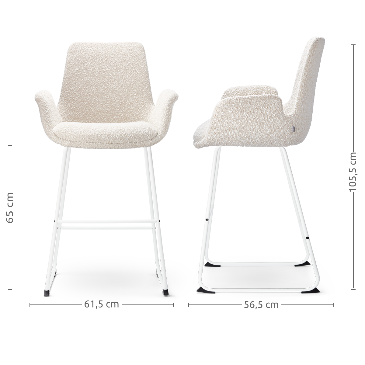 Nino Isa barkruk bouclé beige wit onderstel 65 cm set van 2