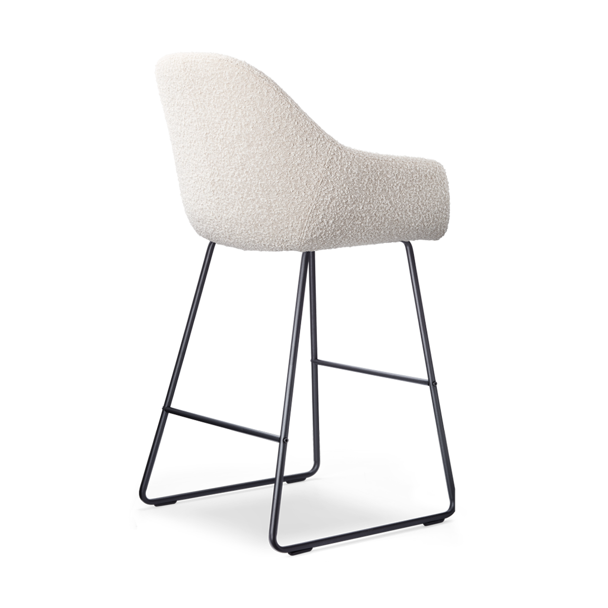 Een gezellig avondje tafelen of uitgebreid ontbijten aan het kookeiland doe je met de set van twee Nino-Isa barkrukken van Nolon. De barkruk heeft een slank frame gemaakt van metaal, wat zorgt voor stevigheid en een moderne uitstraling. De stoffen zitting is voorzien van een gevoerd zitvlak voor extra comfort. De voetsteun op het frame maakt de ontspannen zithouding compleet. De bekleding van deze kookeiland barkruk is verkrijgbaar in twee verschillende kleuren en materialen. De Nino-Isa barkruk met bouclé stof heeft de ultieme warme en gezellige uitstraling, terwijl de luxe stoffen bekleding zorgt voor een meer tijdloze uitstraling. Afhankelijk van jouw smaak kan je deze kruk dus aan jouw interieur aanpassen. Erg handig: deze barkruk heeft geen armleuningen, dus je schuift hem zo onder het keukenblad. Ideaal als je niet veel ruimte hebt in de keuken. Voordelen en tips Set van 2 barkrukken Stevig metalen barkruk onderstel met mooie