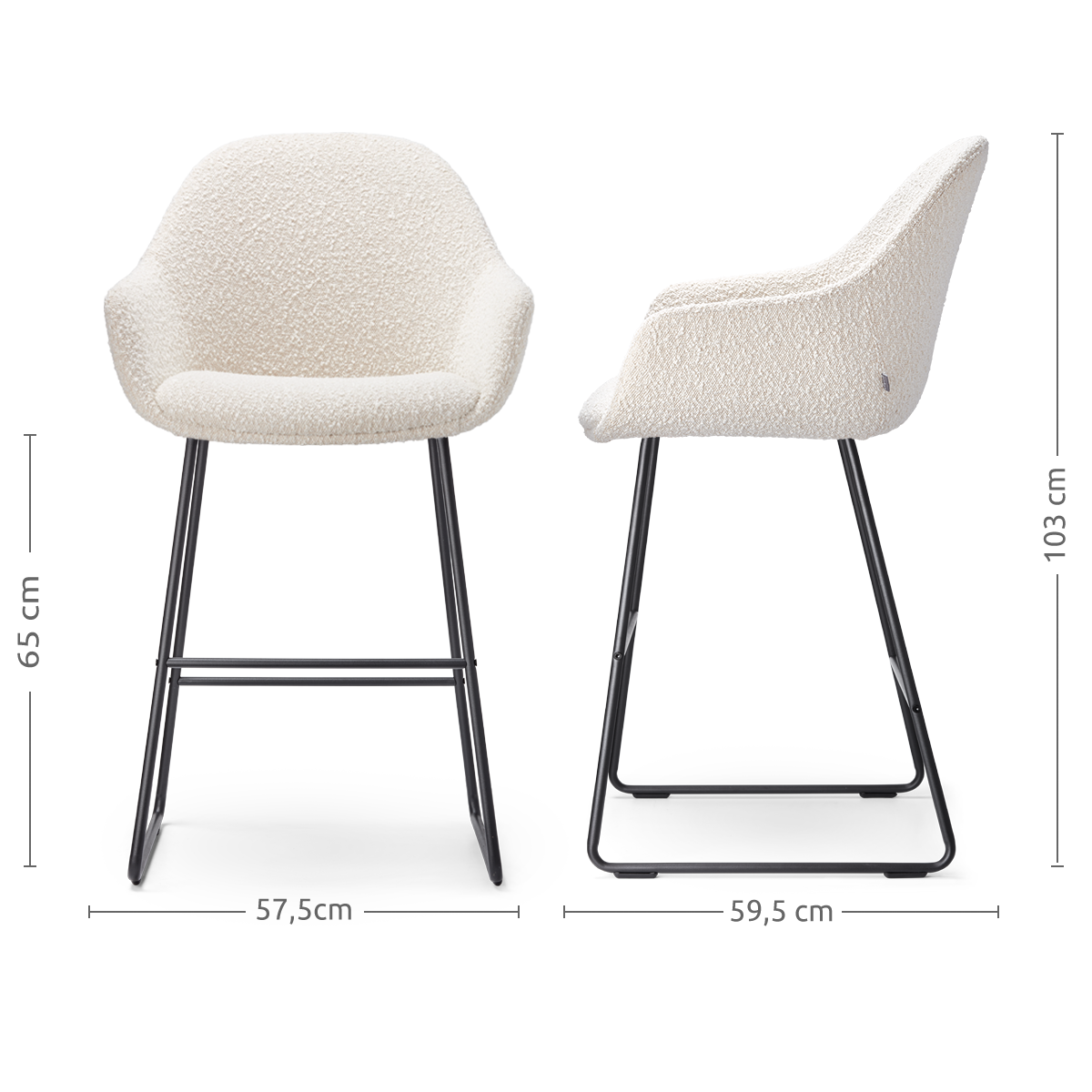 Nino Isa barkruk bouclé beige zwart onderstel 65 cm set van 2