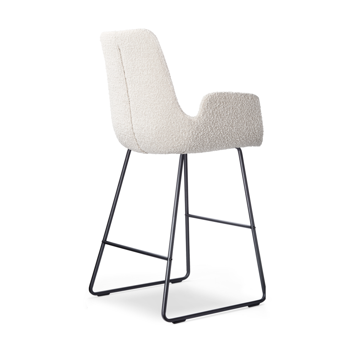 De set Nino-Eef barkrukken van Nolon zijn twee stijlvolle barkruk met armleuningen voor aan je kookeiland. Deze barkruk is ontworpen met zowel functionaliteit als esthetiek in gedachten. Het slanke metalen onderstel zorgt voor een stabiele zit en laat de barkruk tegelijkertijd modern en luchtig ogen. De comfortabele zitting heeft een stevige rugleuning en is verkrijgbaar met luxe stoffen bekleding of bouclé stof. Hiermee is de Nino-Eef een sfeervolle toevoeging aan de keuken. Naast de rugleuning is de Nino-Eef bovendien ontworpen met armleuningen voor extra ondersteuning. Deze armleuningen zijn iets lager dan standaard, wat niet ten koste gaat van het zitcomfort maar er wel voor zorgt dat de kruk beter onder het keukenblad past. De voetsteun op het metalen frame maakt de barkruk vervolgens helemaal af. Maak een keuze uit de verschillende materialen en kleuren van de zitting en geniet van ultieme stijl en comfort aan je kookeiland. Voordelen en