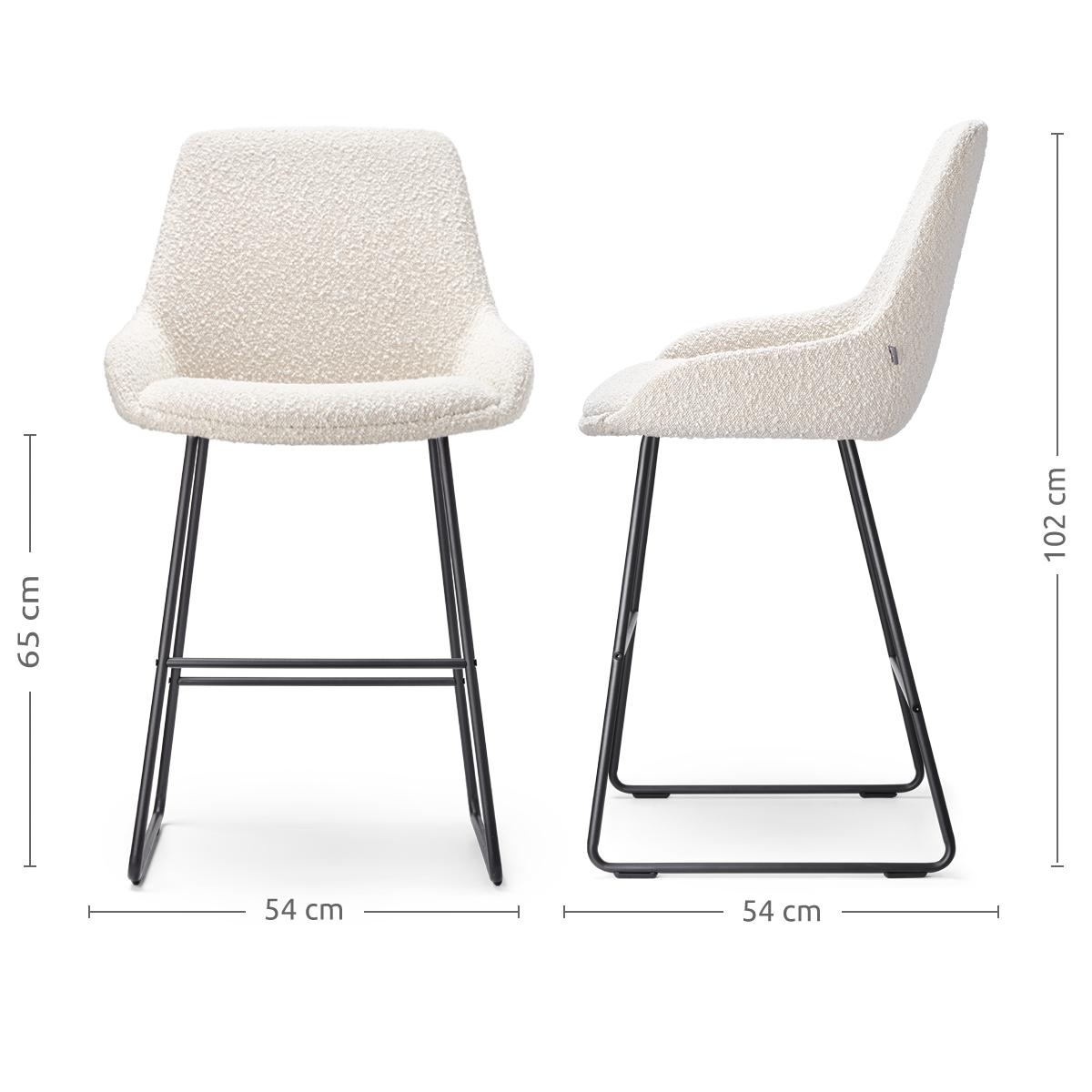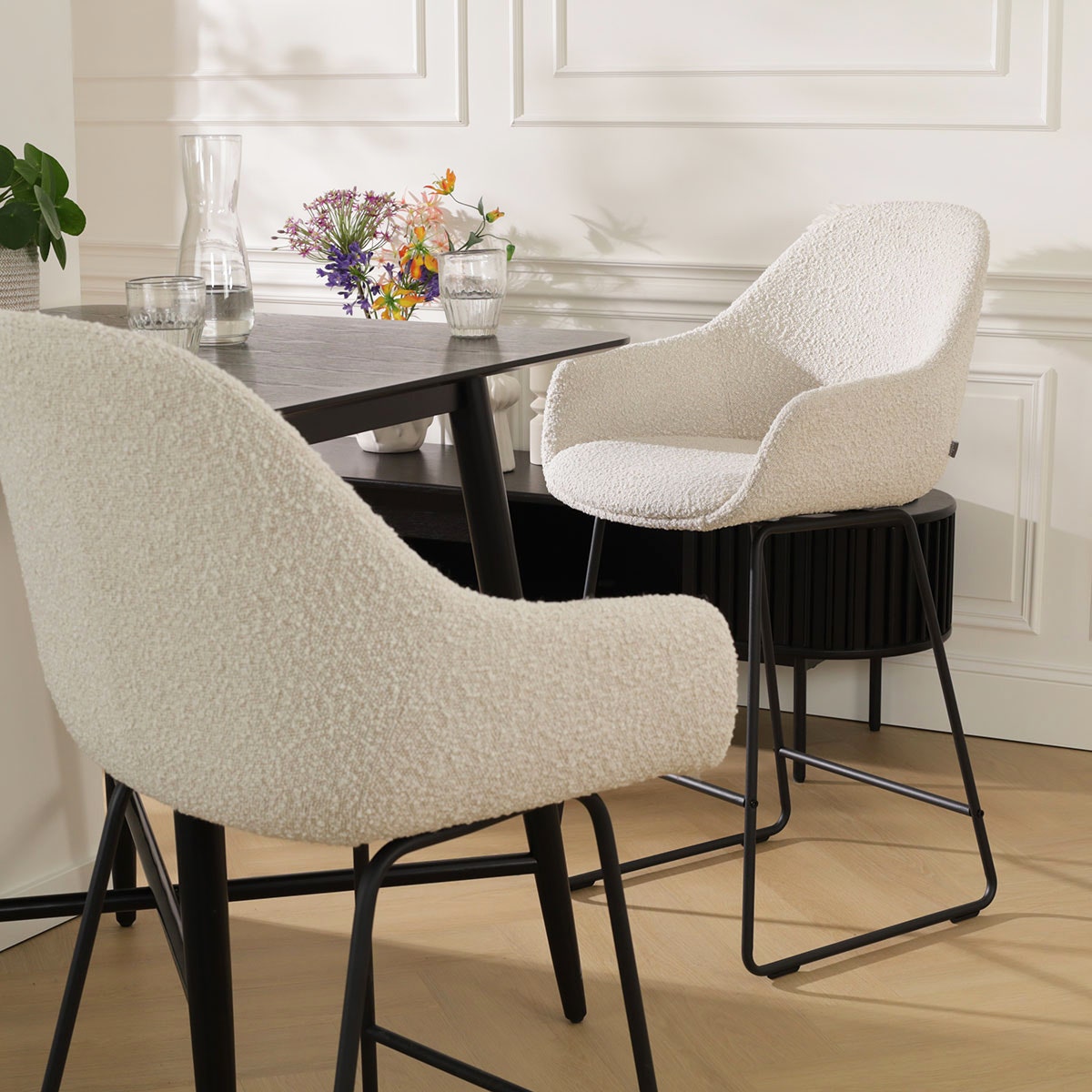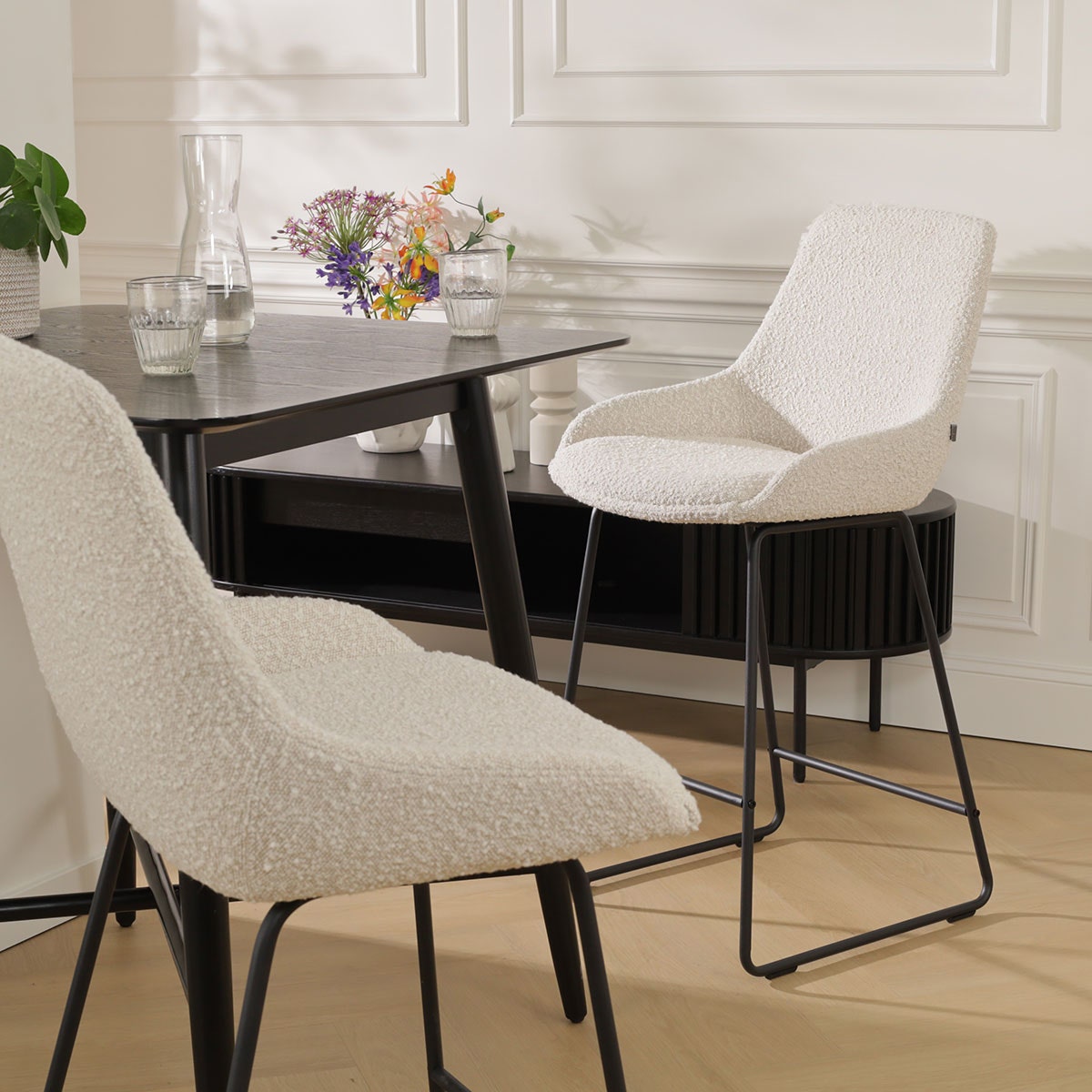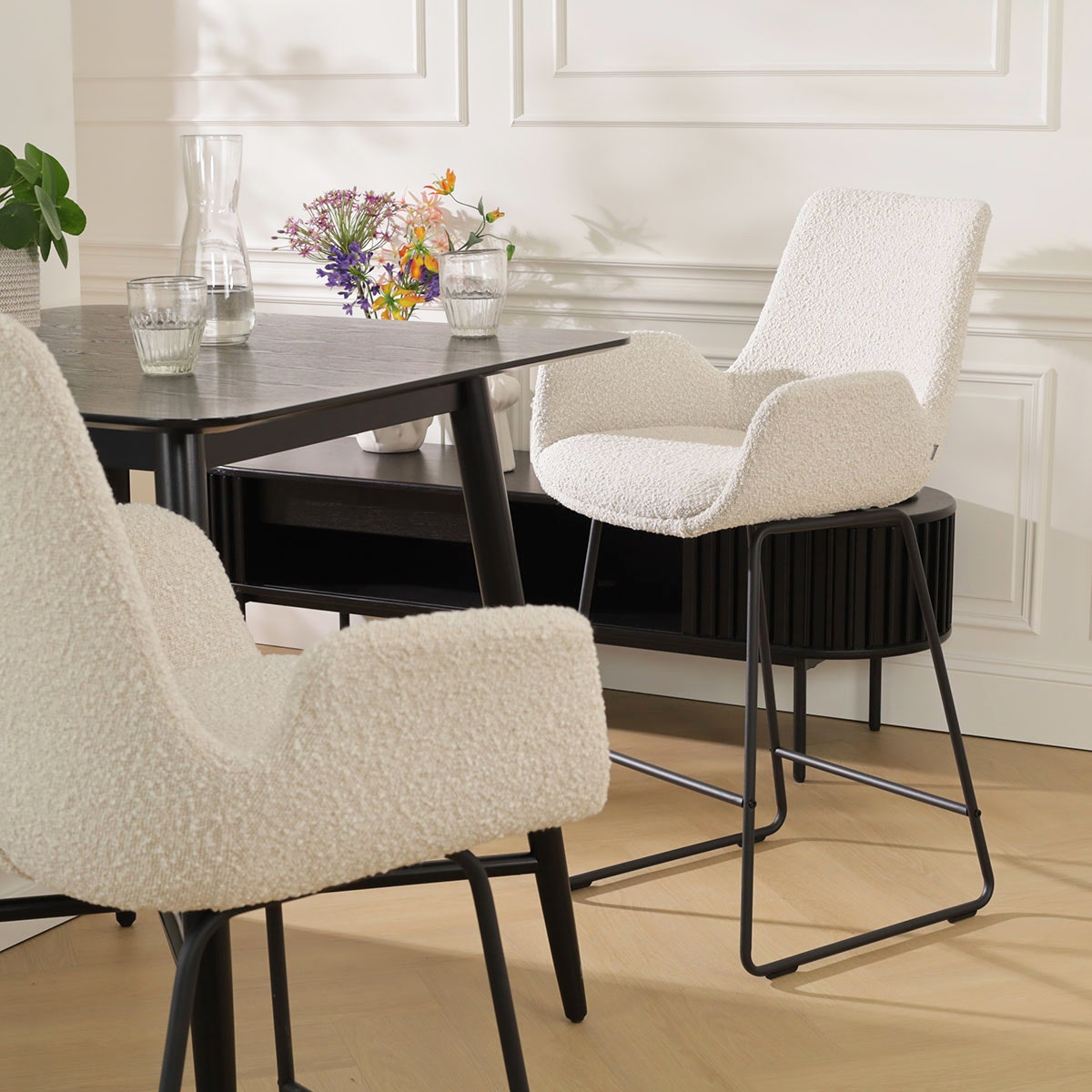 Nino Mae barkruk bouclé beige zwart onderstel 65 cm set van 2
