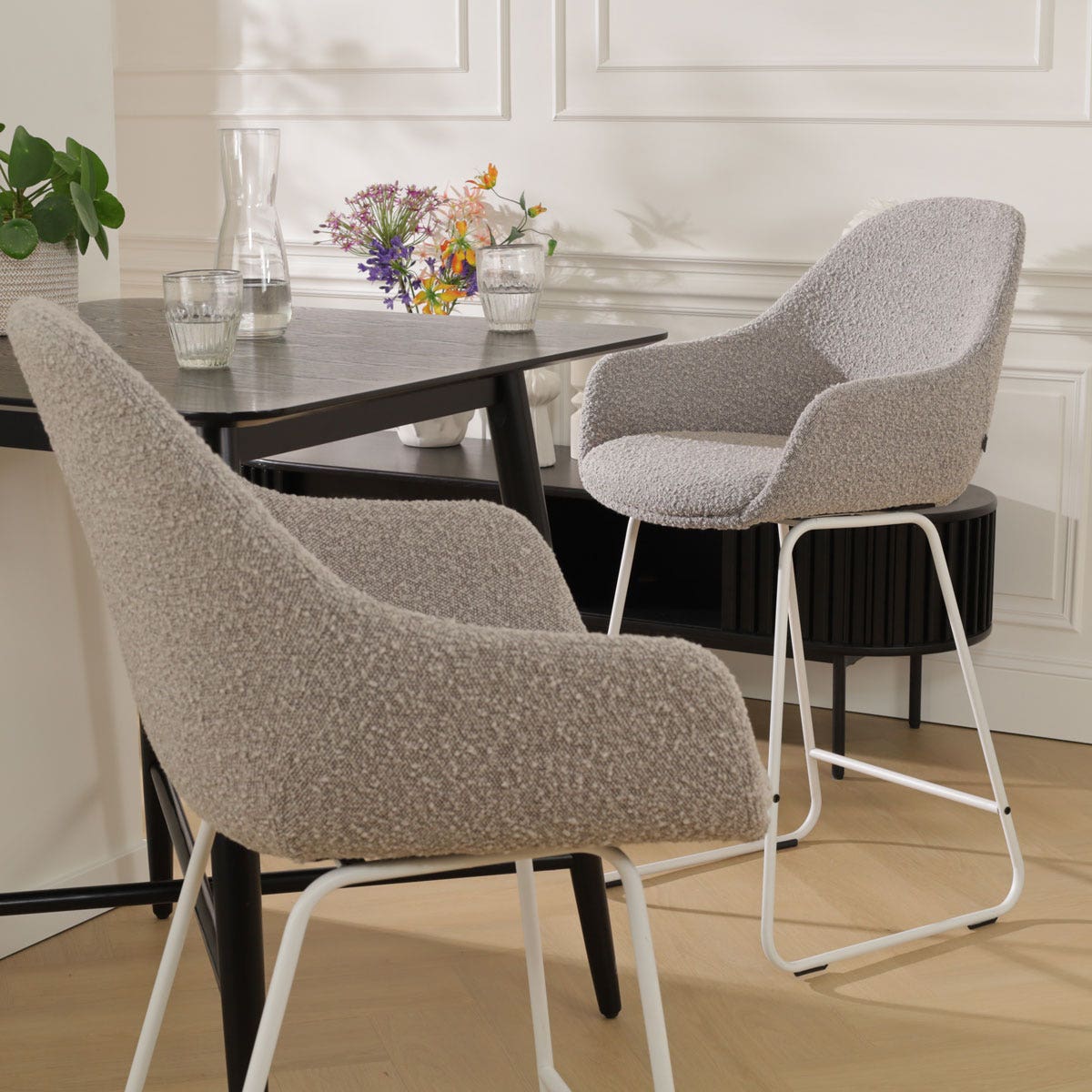 Nino Mae barkruk bouclé taupe wit onderstel 65 cm set van 2