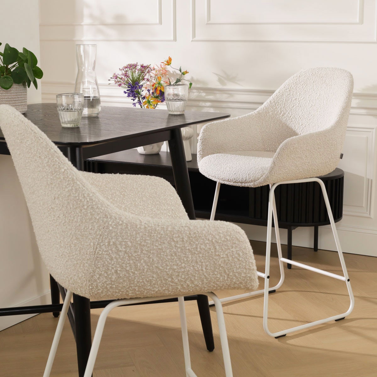 Nino Mae barkruk bouclé beige wit onderstel 65 cm set van 2