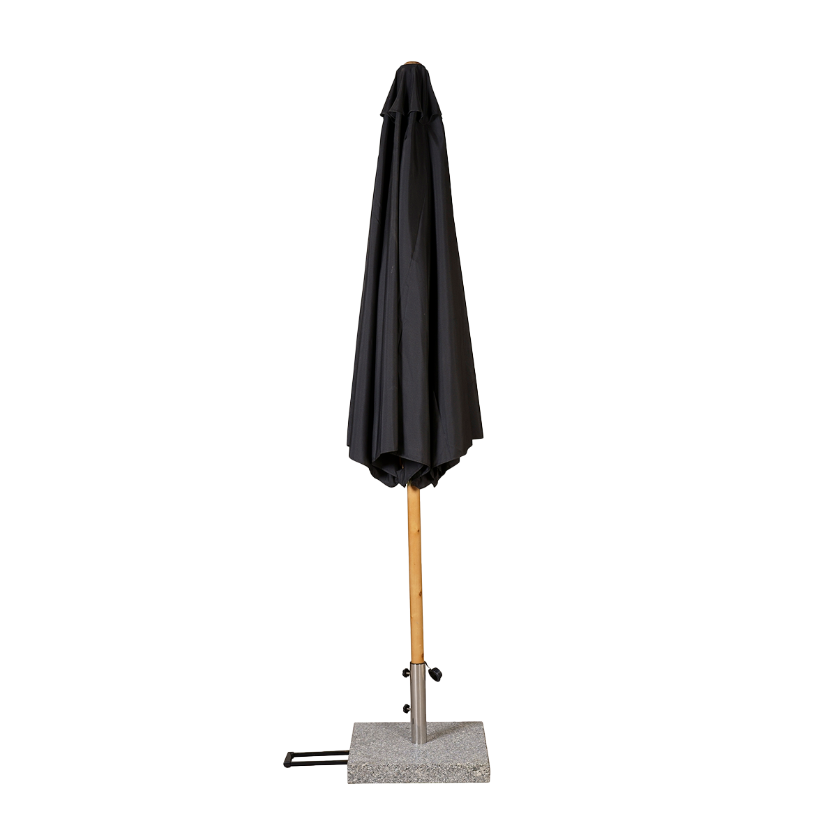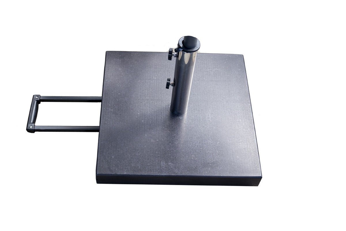 De Odin parasolvoet van Nest outdoor is een stijlvolle houder die de parasol op zijn plek houdt. De parasolvoet heeft een vierkante vorm en is gemaakt van graniet. Door de zwarte kleur en strakke vormen heeft de parasolvoet een moderne uitstraling. De twee wieltjes aan de zijkant zorgen ervoor dat de voet gemakkelijk over het terras te verplaatsen is. Dankzij de uitschuifbare handgreep staat de parasolvoet extra stabiel en is hij ook geschikt om te gebruiken met een zweefparasol. Bij vorst wordt aangeraden de parasolvoet op te bergen om scheuren in het materiaal te voorkomen. Voordelen Parasolvoet van graniet Moderne uitstraling Gemakkelijk te verplaatsen dankzij de wieltjes Extra stabiel door het uitschuifbare handvat