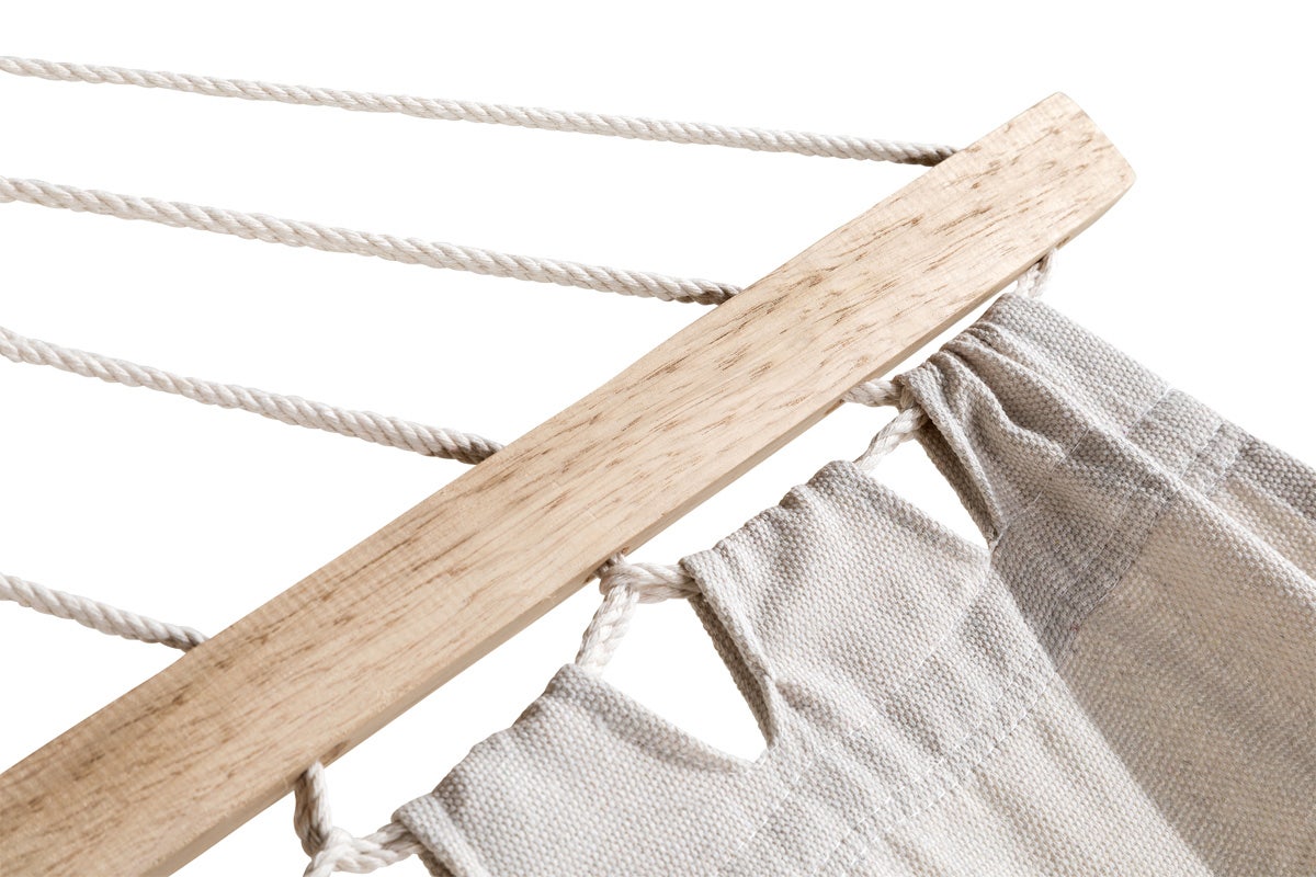 Richt je terras in stijl in met de heerlijke Freeke hangmat van Nest outdoor. Met een hangmat als deze kan je optimaal genieten van mooie zomerdagen in de achtertuin. De standaard van de hangmat is gemaakt van acaciahout en geeft de hangmat een luxe en klassieke uitstraling. Het beige polyester doek draagt ook bij aan de elegante sfeer. De zware houten standaard zorgt ervoor dat de hangmat stevig op de grond staat en je zorgeloos boven de grond zweeft. Voordelen Hangmat met houten standaard Beige polyester doek Door de bijpassende standaard kan je de hangmat overal neerzetten Ideaal om van de zon te genieten Berg de hangmat ’s avonds en na het zomerseizoen opMax belastbaar gewicht is 120 kg