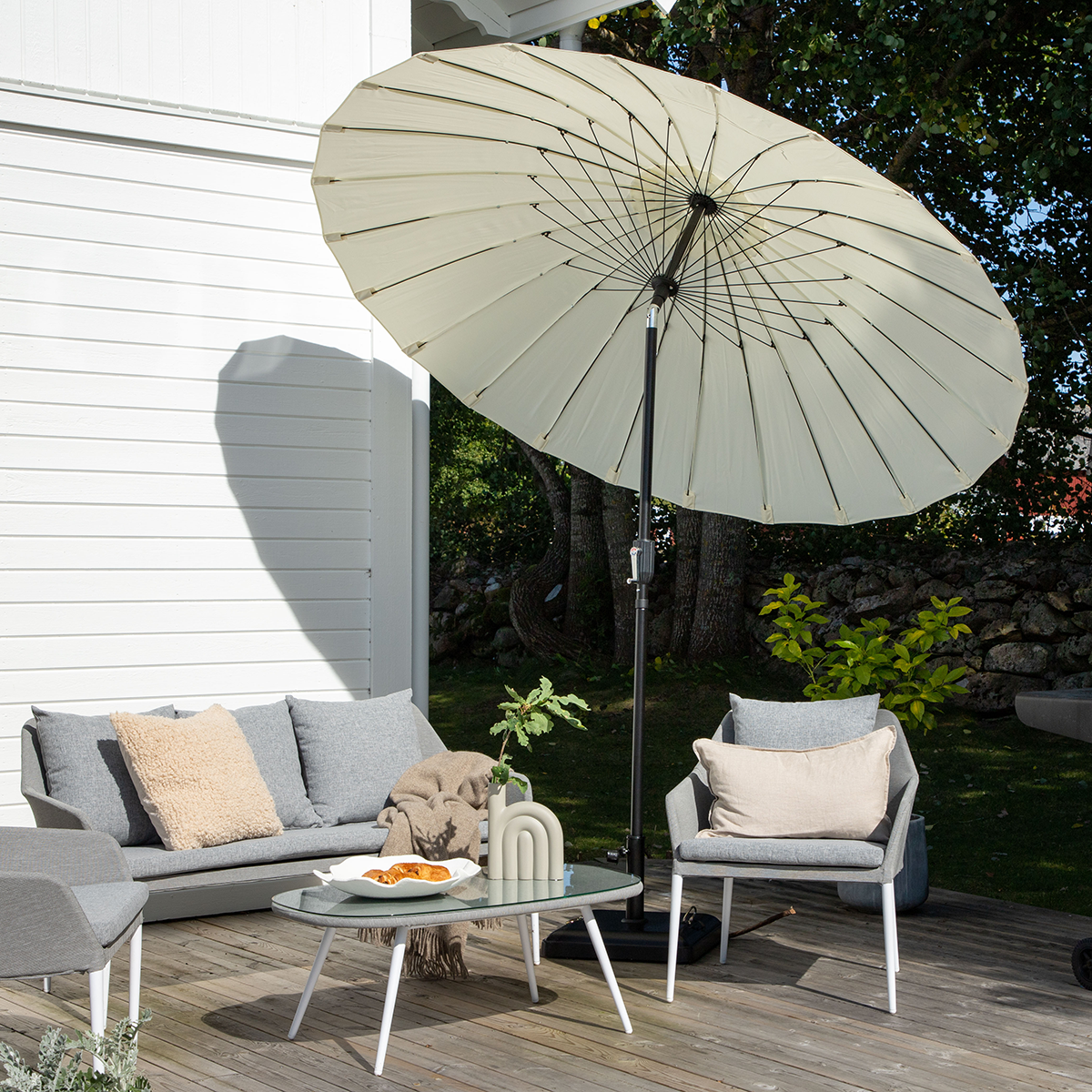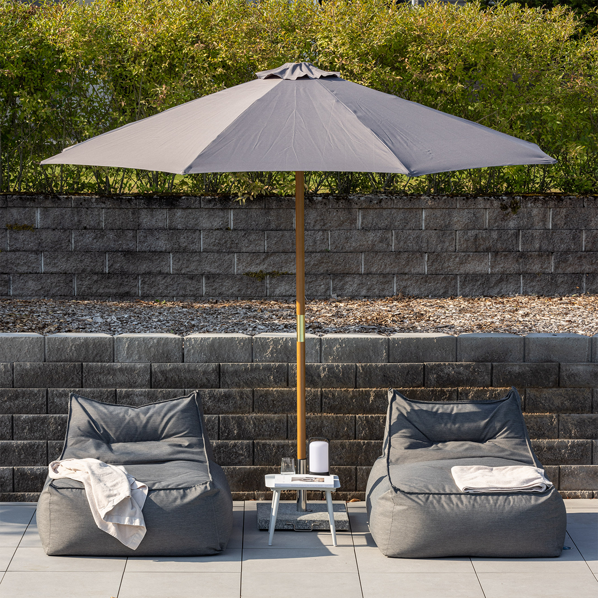 De Yvan parasol van Nest Outdoor is een stijlvolle parasol met een stevige beukenhouten stang en polyester doek dat zorgt voor ruime schaduw in je tuin of op je terras. Met de Yvan parasol grijs haal je niet alleen schaduw, maar ook een stijlvolle toevoeging voor je tuin of terras in huis. Het ruime parasoldoek van polyester biedt voldoende bescherming tegen de zon en is tegelijkertijd stevig en waterafstotend. Het beukenhouten frame zorgt voor een natuurlijke uitstraling, is sterk en licht, en draagt bij aan de elegante uitstraling van de parasol. Met een royale diameter van 300 cm creëer je eenvoudig een aangename schaduwplek voor je zithoek of eettafel. De parasol is kantelbaar, zodat je de schaduw kunt aanpassen aan de stand van de zon. Ideaal voor iedere tuin, terras of balkon. Voordelen en tips Beukenhouten stang voor een stevige en natuurlijke uitstraling Polyester parasoldoek is UV-bestendig en waterafstotend